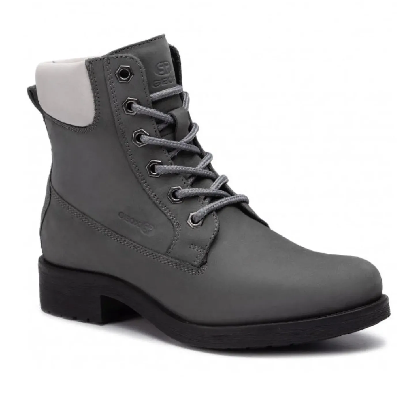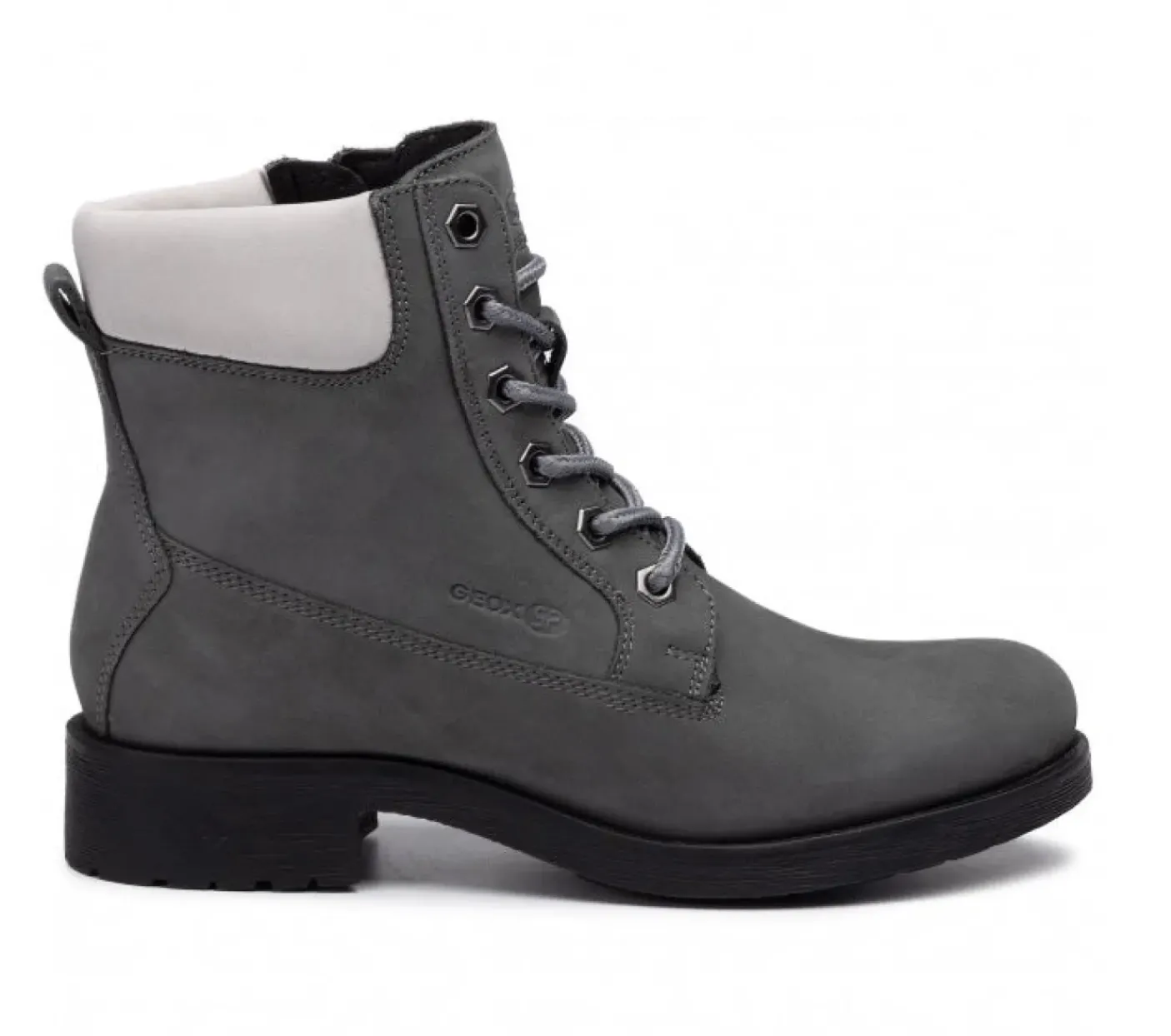 Anfibi in pelle con rivestimento interno in tessuto, Suoletta in cuoio e chiusura con lacci e zip laterale. Fondo in gomma con brevetto traspirante GEOX