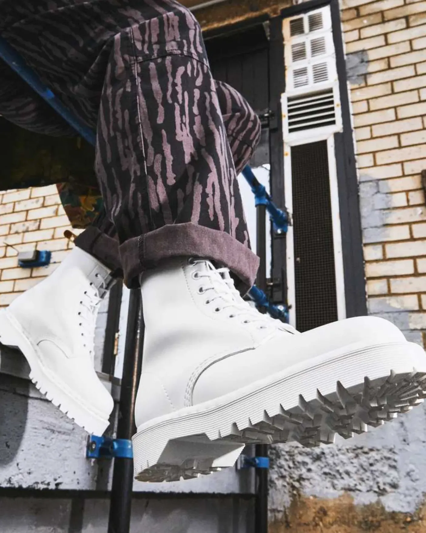 L’anfibio Vegan Jadon II, 100% vegan, realizzato senza l’utilizzo di alcun prodotto di origine animale. Tomaia e suola termosaldate e tenute insieme da una cucitura. Chiusura con lacci e zip.