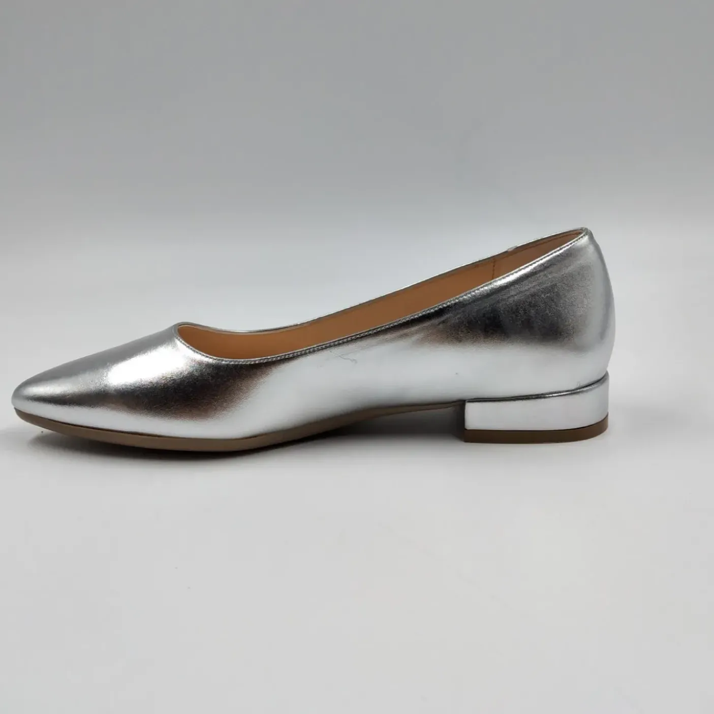 Ballerine rivestite internamente in pelle con punta affusolata. Tacco 1cm