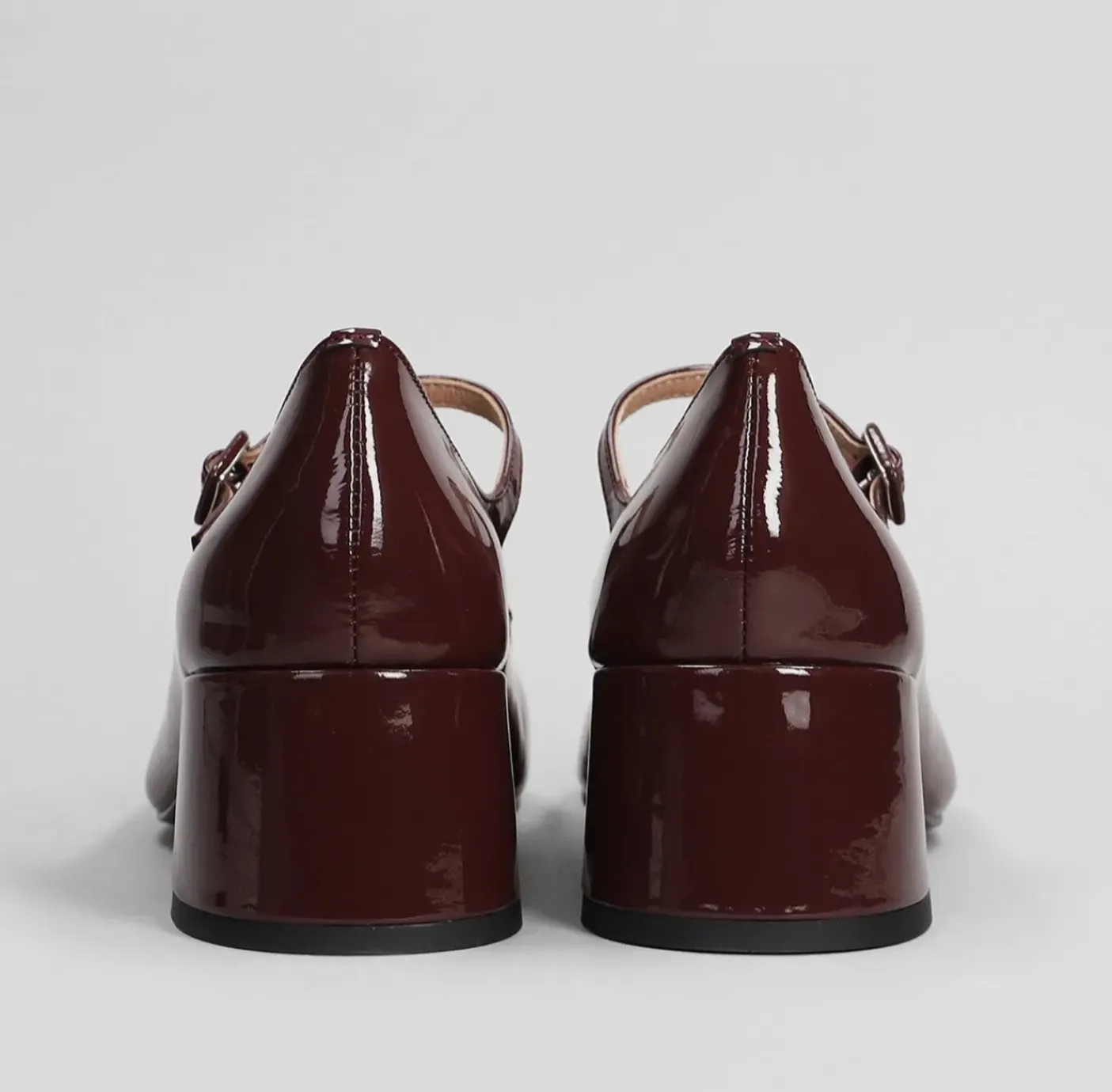 Ballerina in pelle lucida, rivestiti internamente in pelle. Chiusura regolabile. Tacco 5cm.