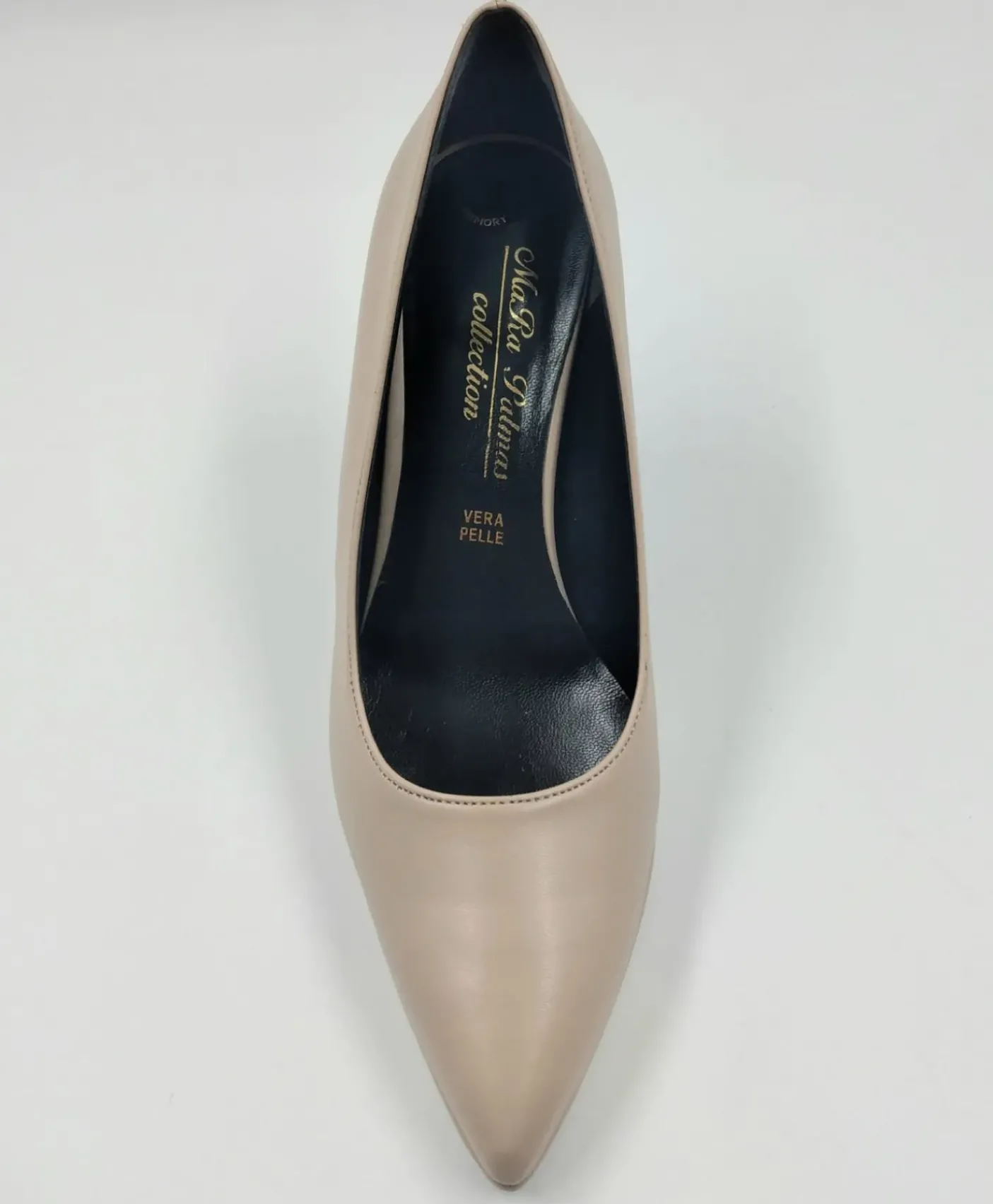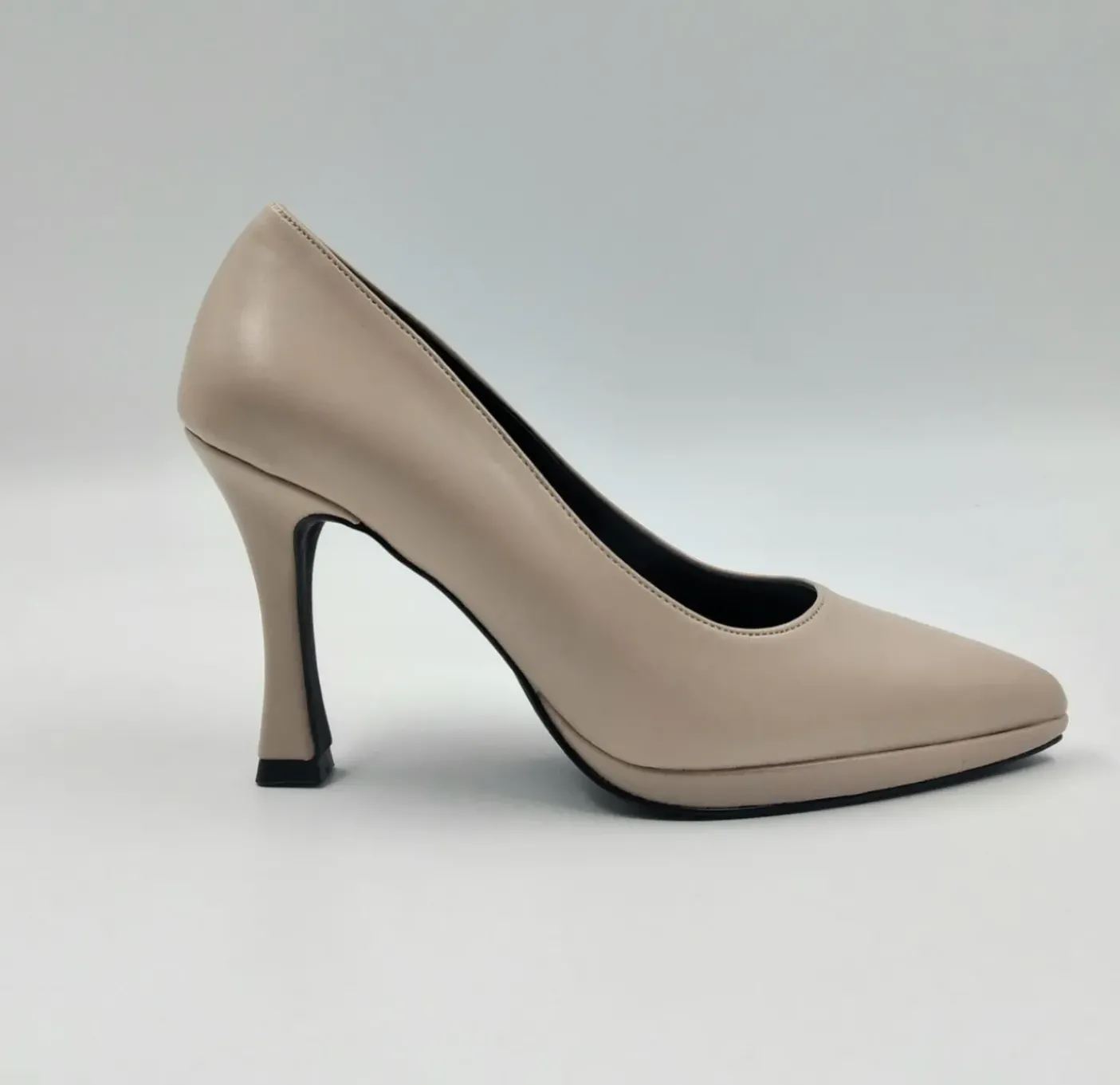 Decollete morbida rivestita internamente in Vera Pelle. Soletta in memory foarm. Tacco a rocchetto 9,5 cm e plateau 1cm.