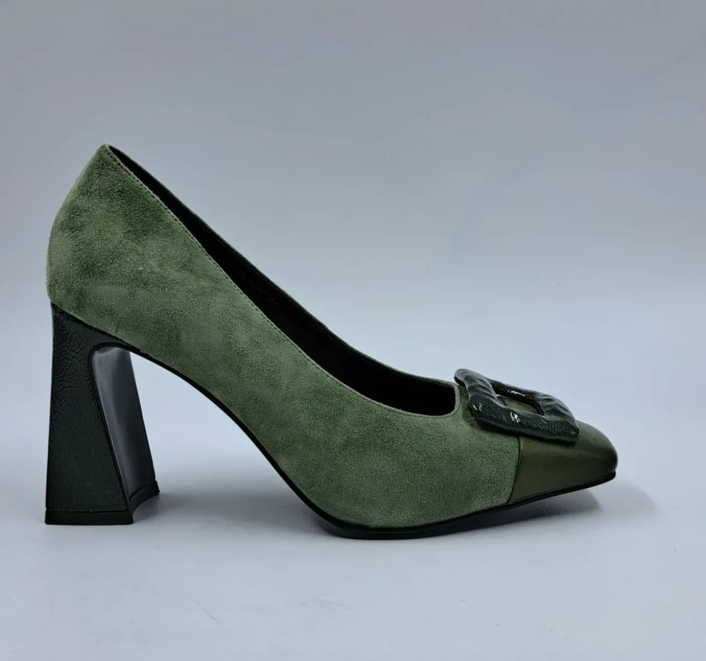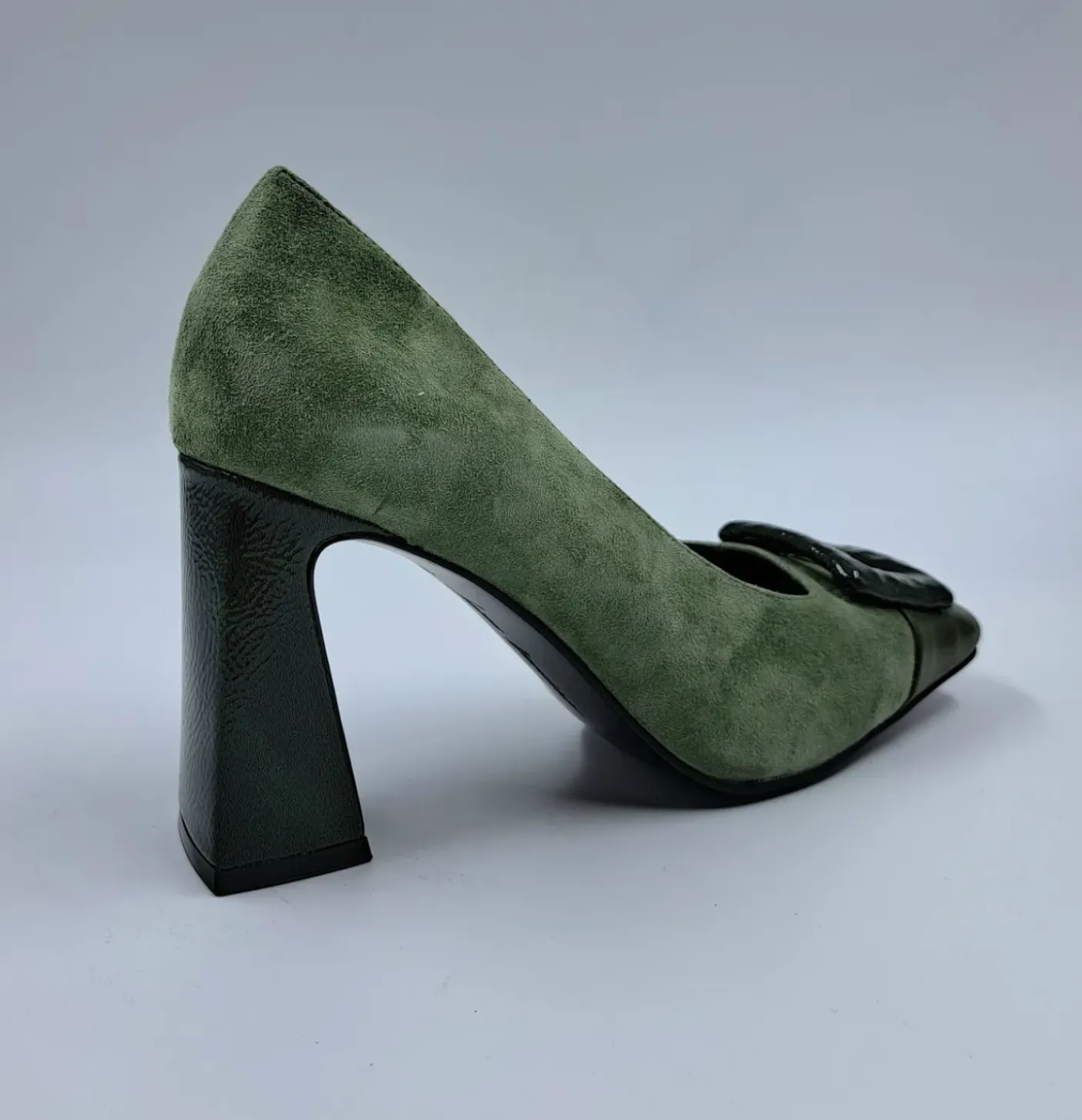 DECOLLETE’ IN PELLE E CAMOSCIO VERDE