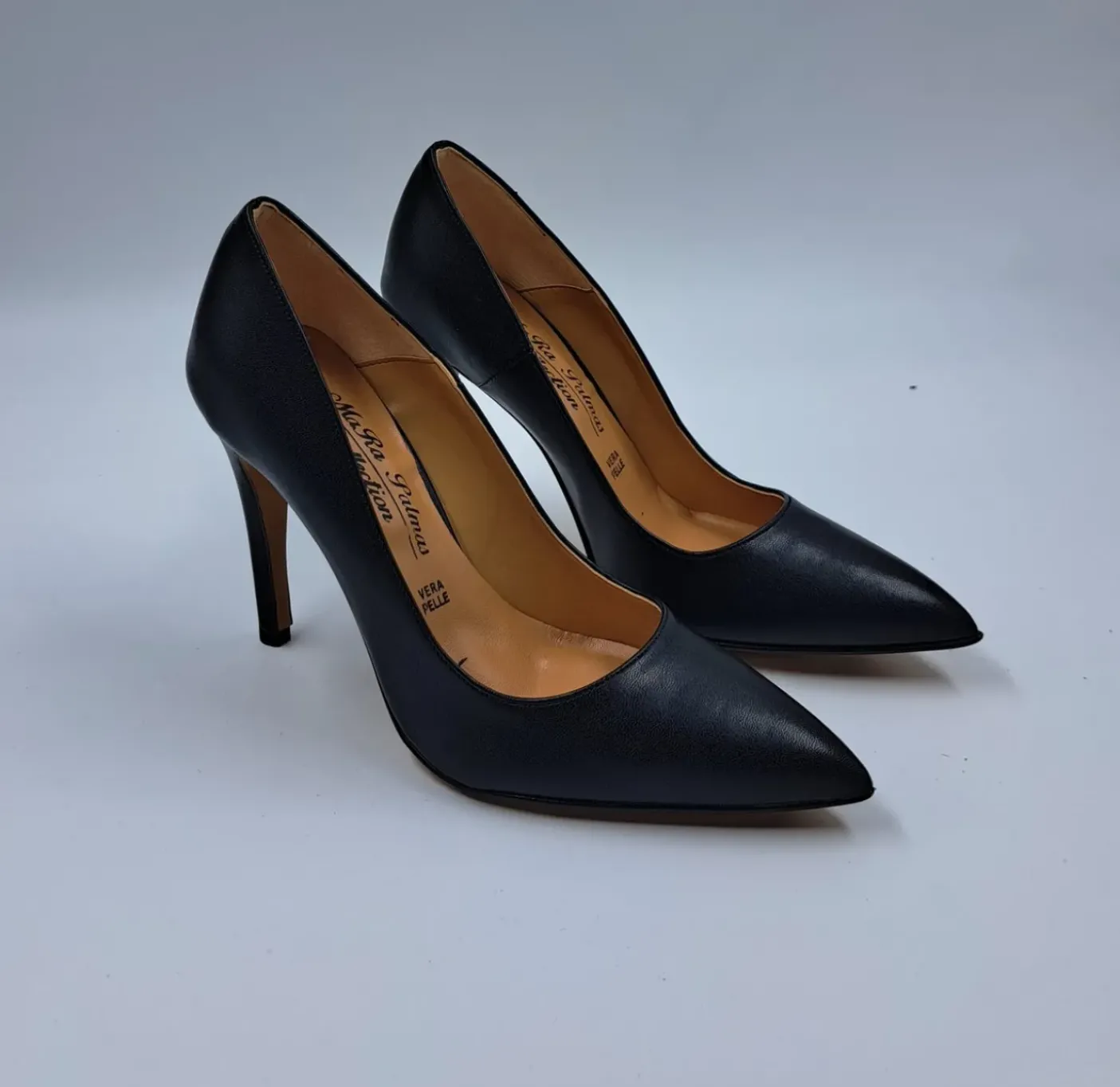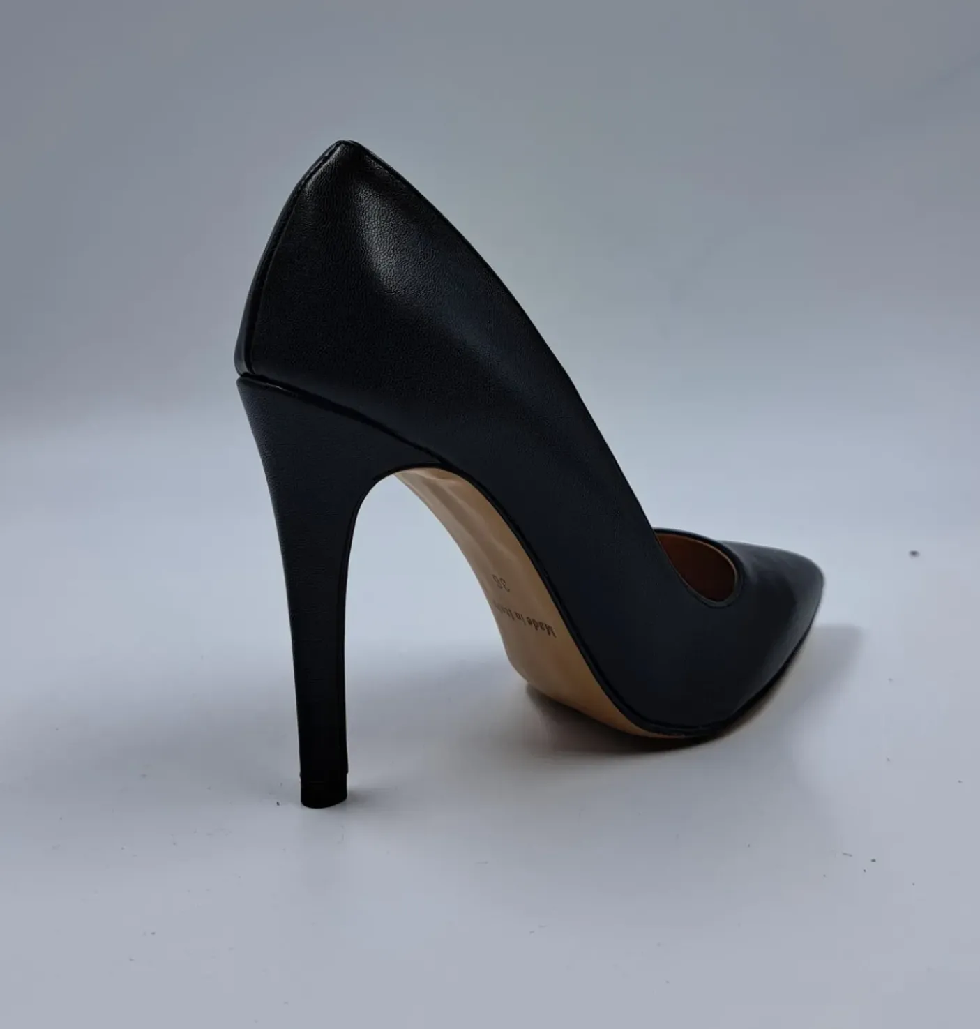 Decollete in ecopelle. Interno rivestito in pelle. Soletta in pelle leggermente memory. Tacco 10cm