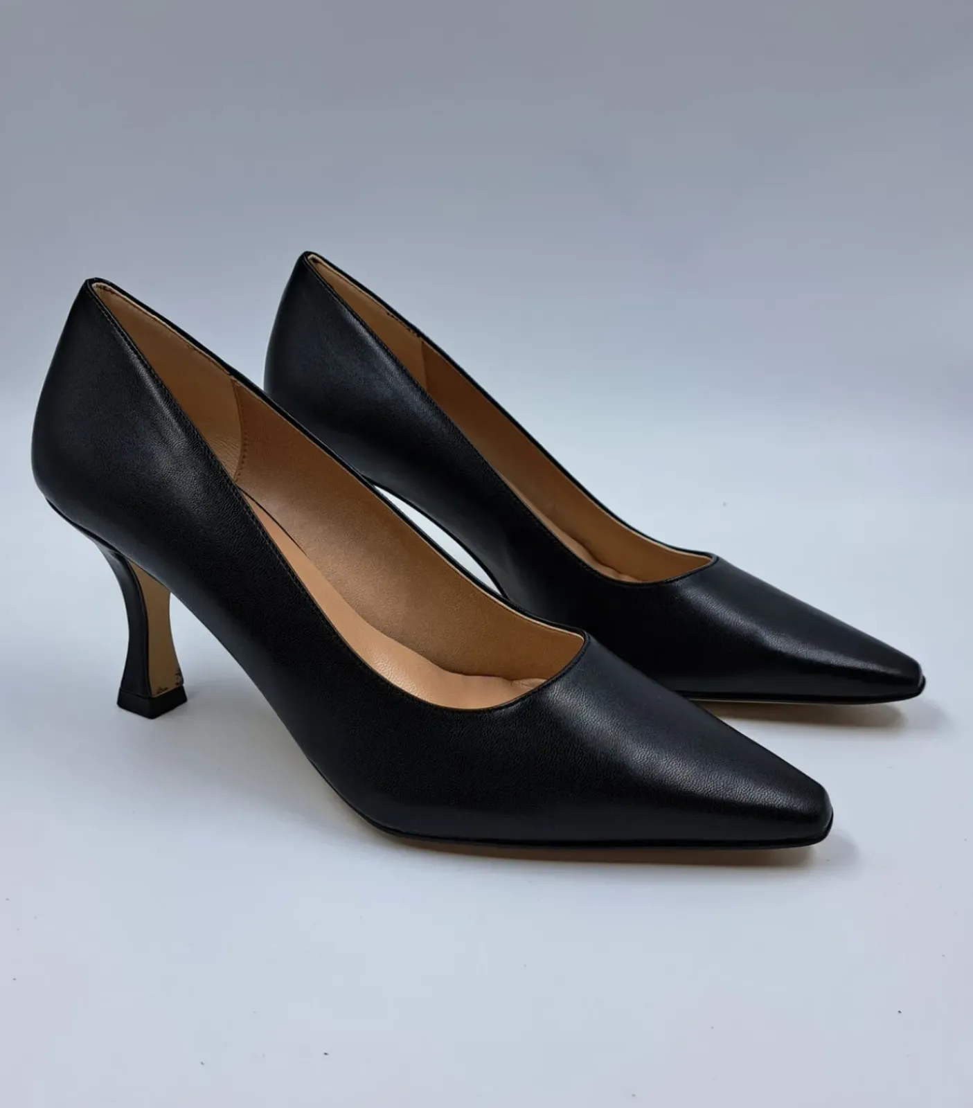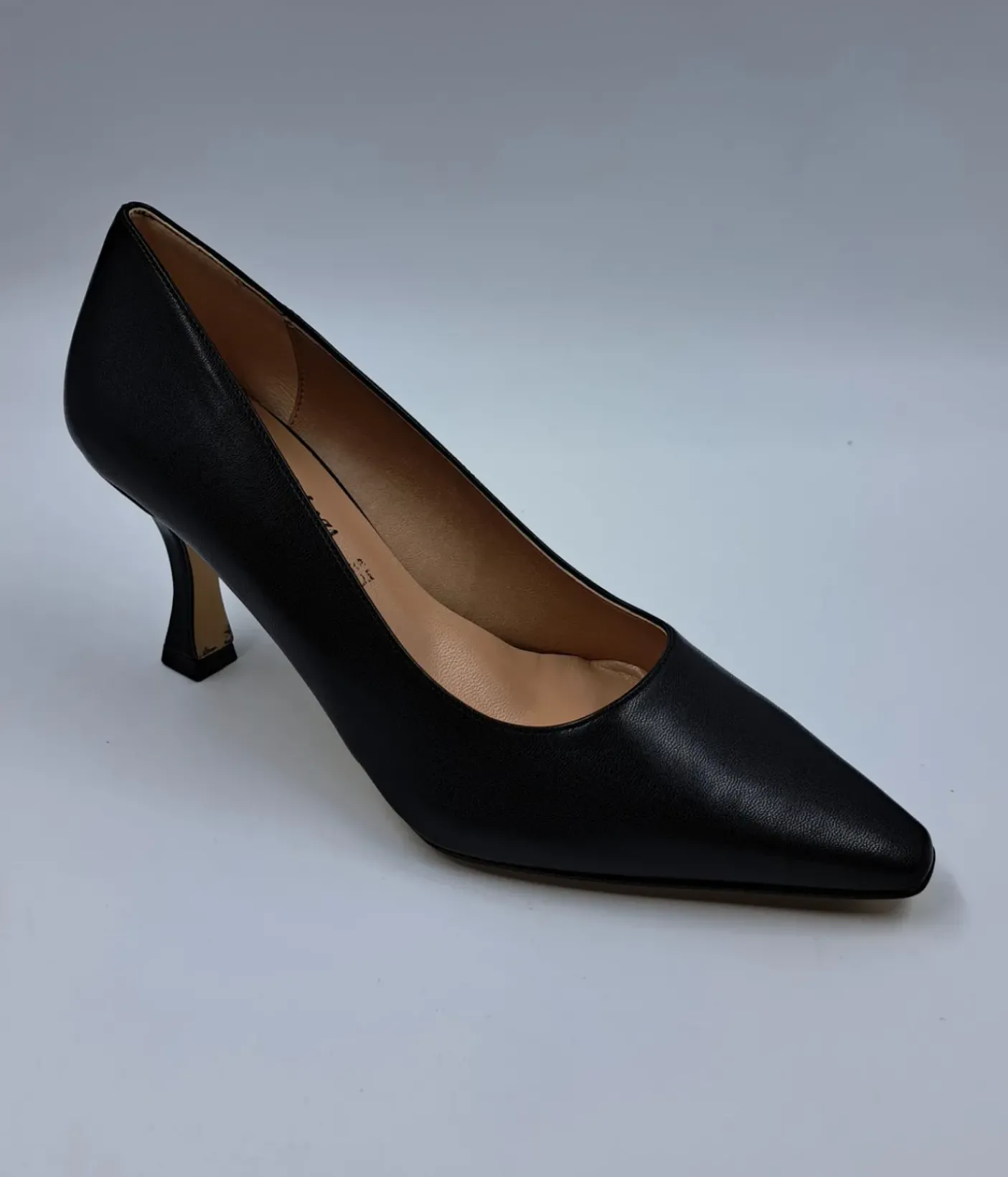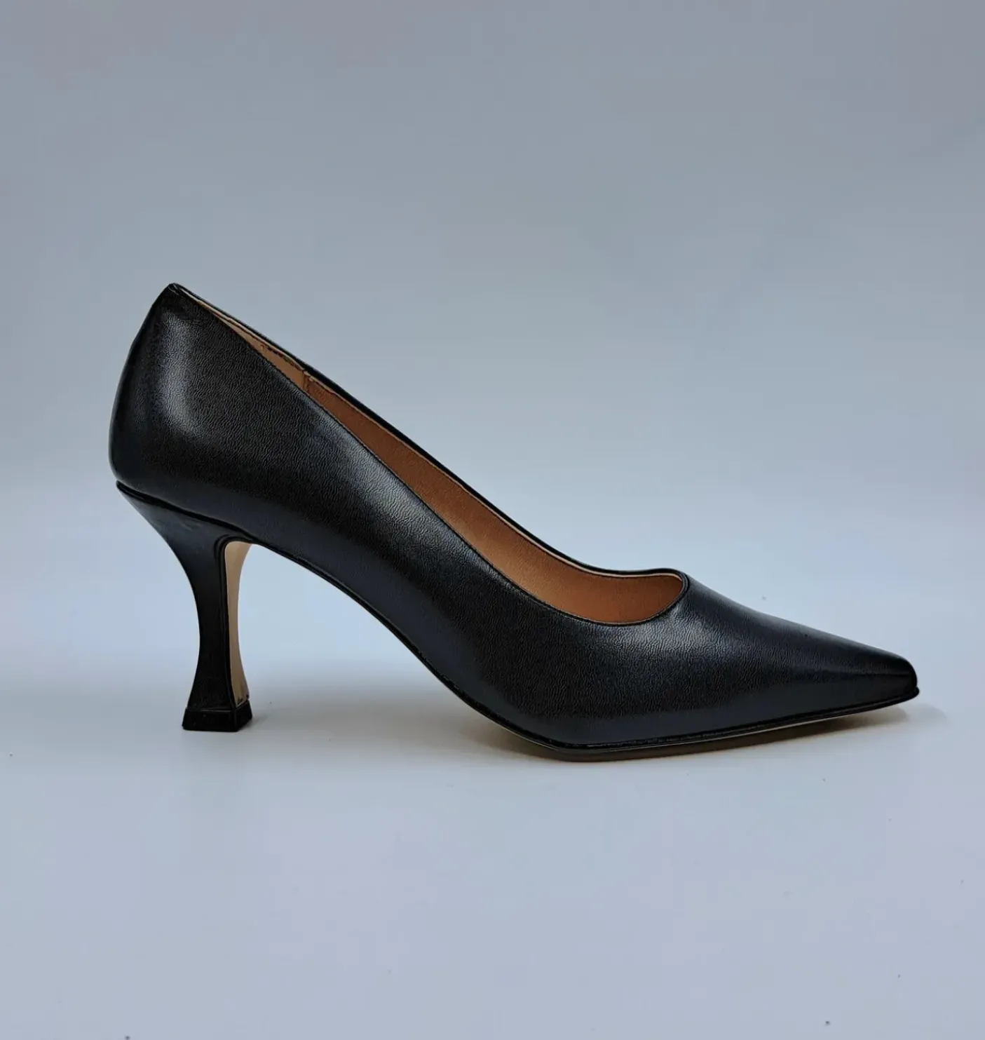 Decollete morbida rivestita internamente in Vera Pelle. Soletta in pelle. Tacco a rocchetto 7 cm.