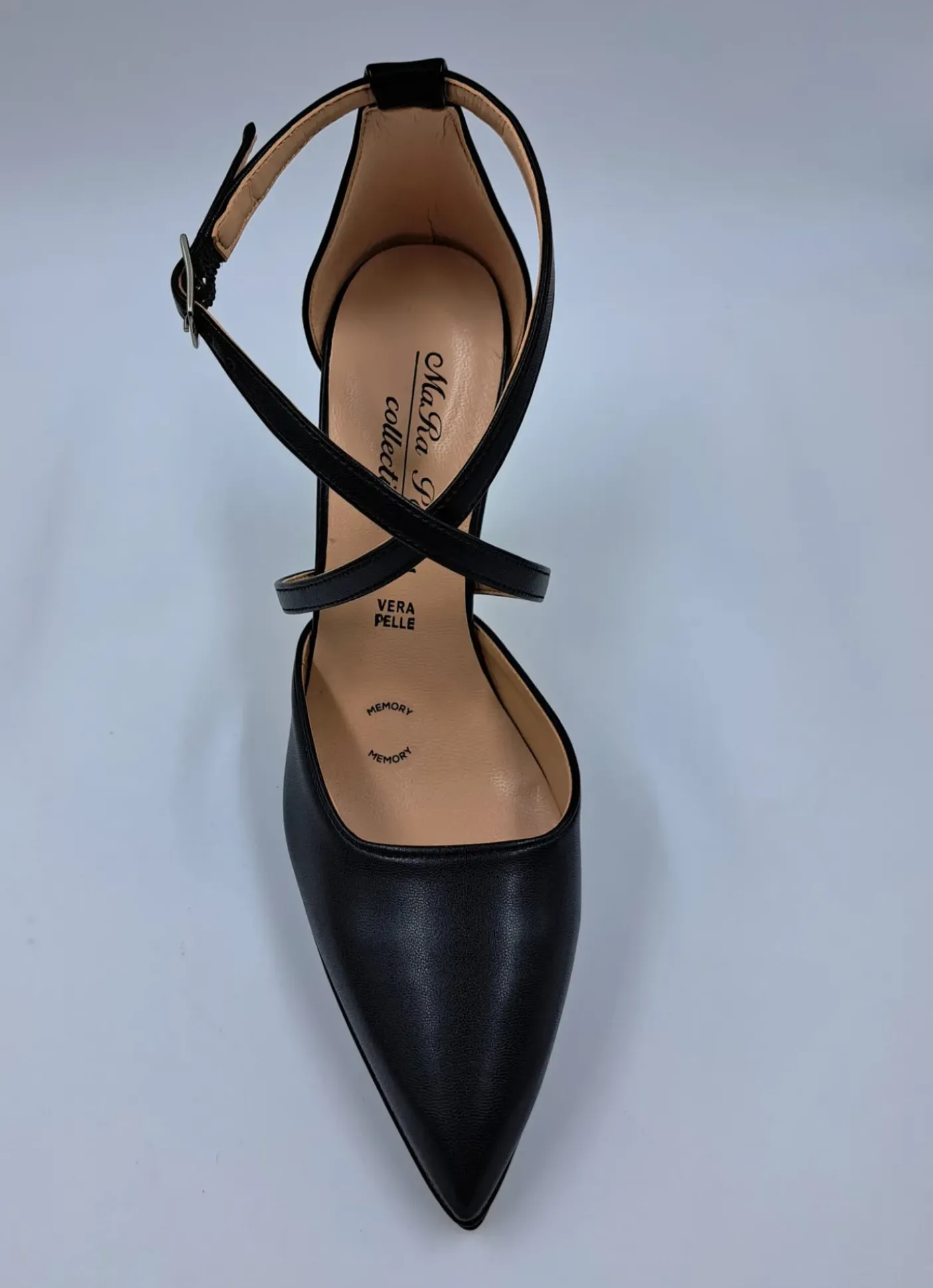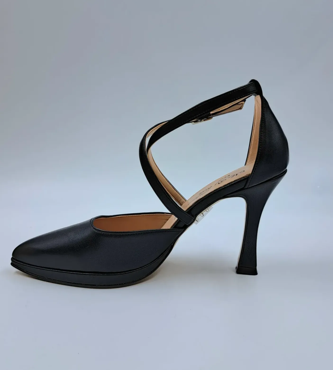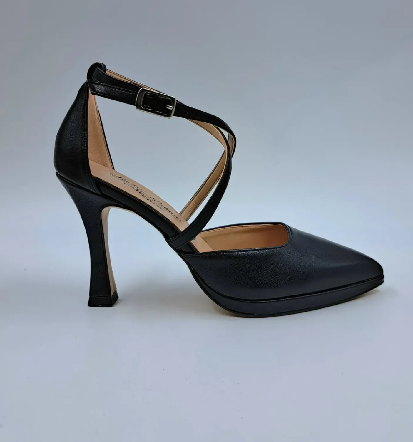 Decolleté con chiusura alla caviglia regolabile. Rivestita internamente in pelle. Tacco 9.5 cm.