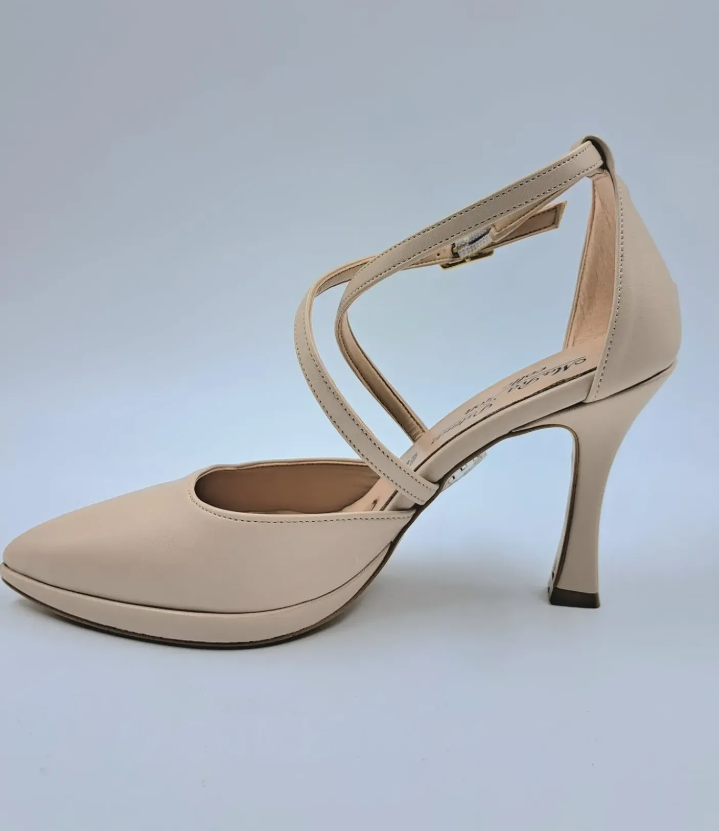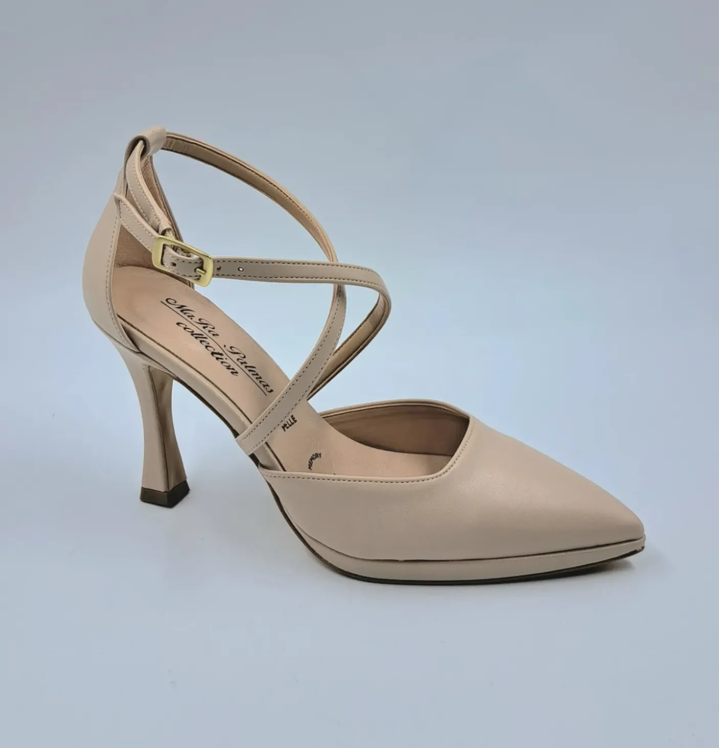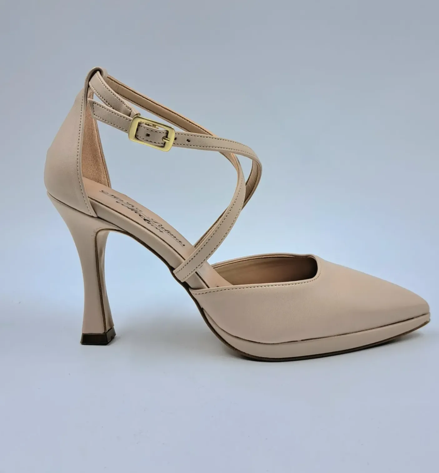 Decolleté con chiusura alla caviglia regolabile. Rivestita internamente in pelle. Tacco 8 cm.
