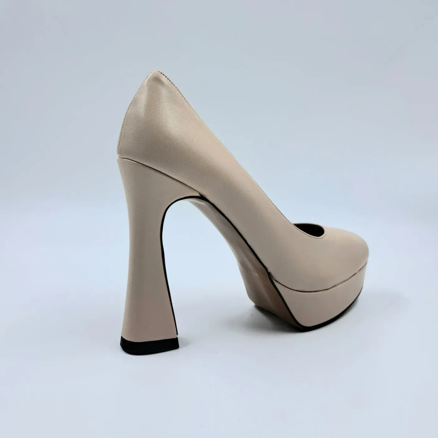 Decolleté in ecopelle rivestita internamente in pelle. Punta affusolata. Tacco squadrato 11.5 cm e plateau 2.5cm