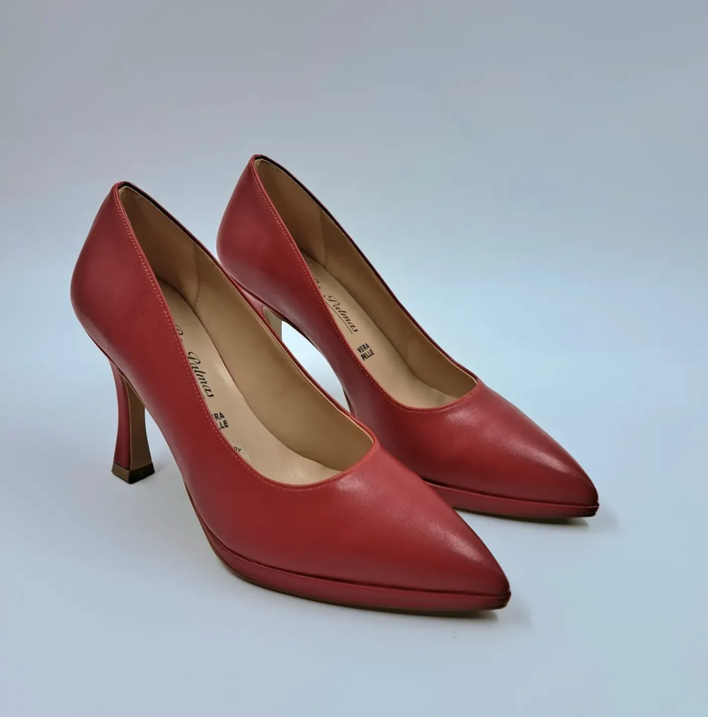 Decollete morbida ecopelle, rivestita internamente in Vera Pelle. Soletta in memory foarm. Tacco a rocchetto 10 cm e plateau 1cm.