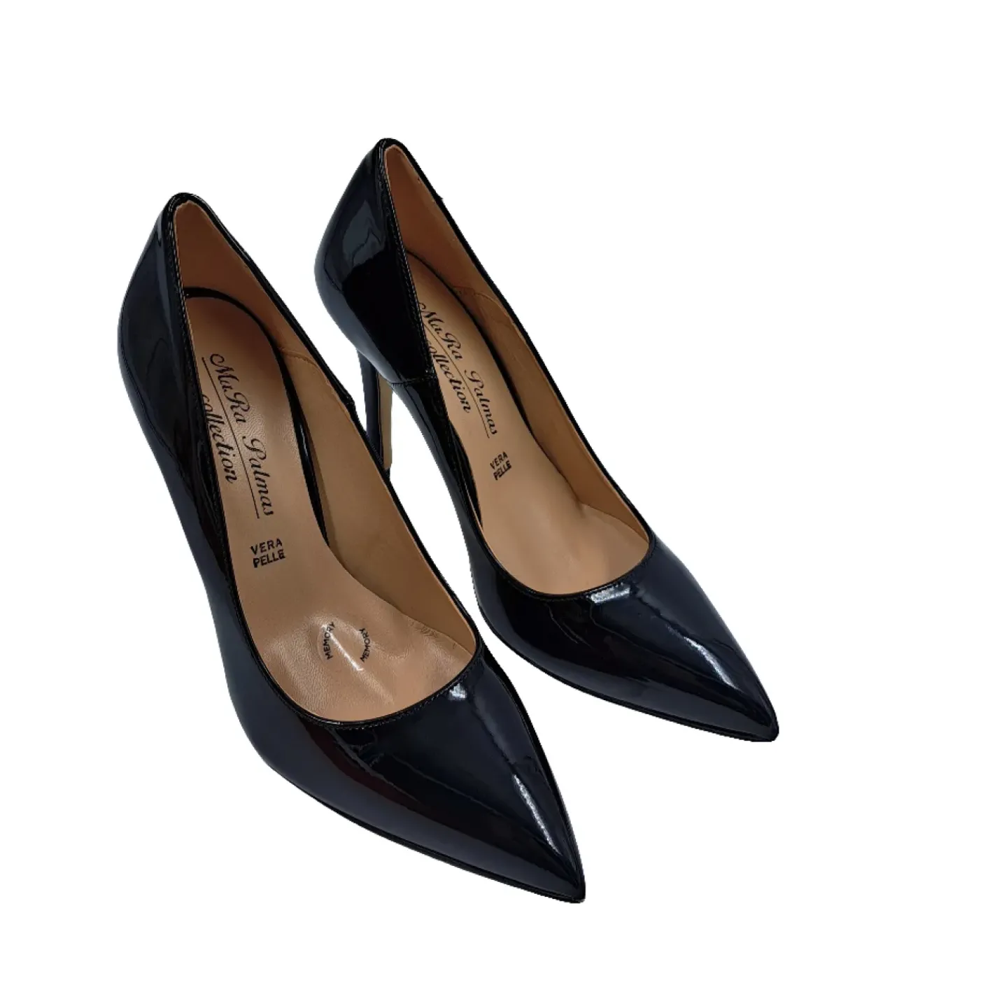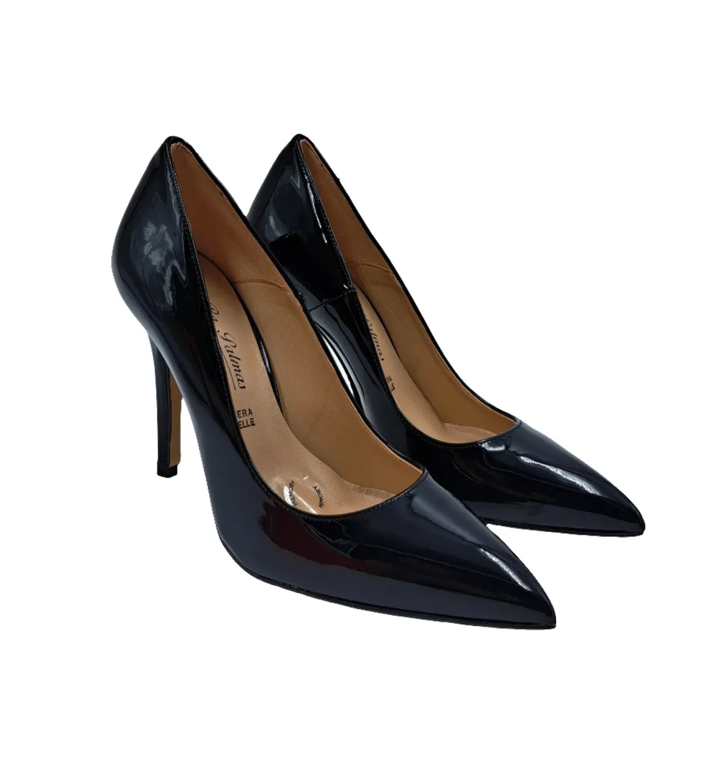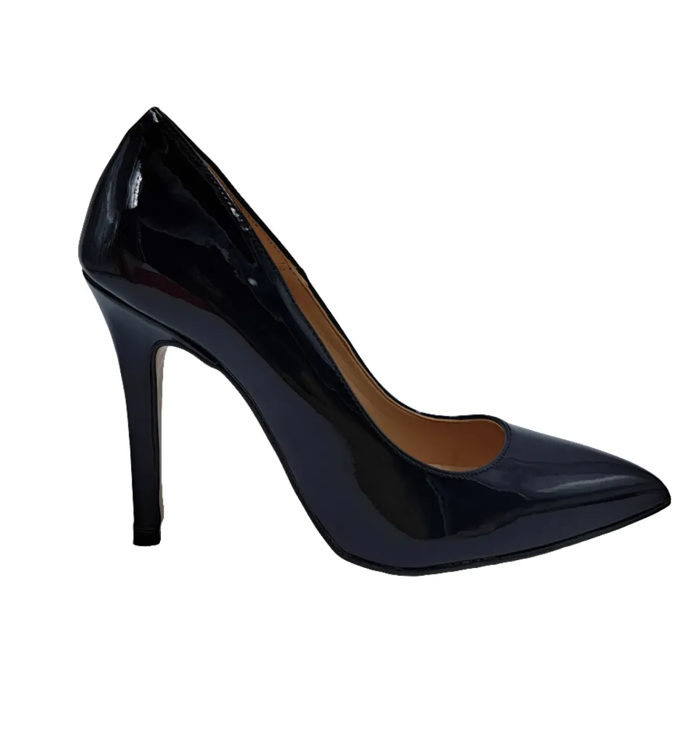 Decollete in ecopelle lucida rivestita internamente in pelle. Soletta in pelle. Tacco a spillo 10cm
