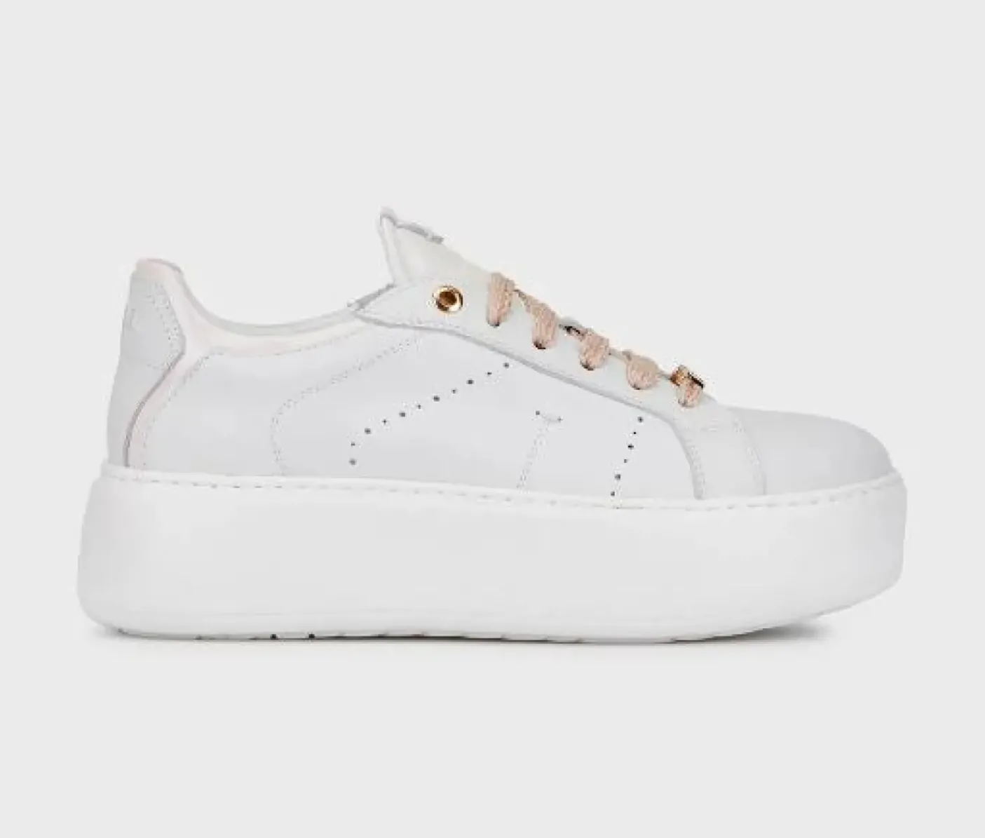 Sneakers in vera pelle con dettagli pelle celeste. Soletta Memory Ultra Soft. Chiusura con lacci. Charms logo asportabile. Fondo gomma 4,5cm