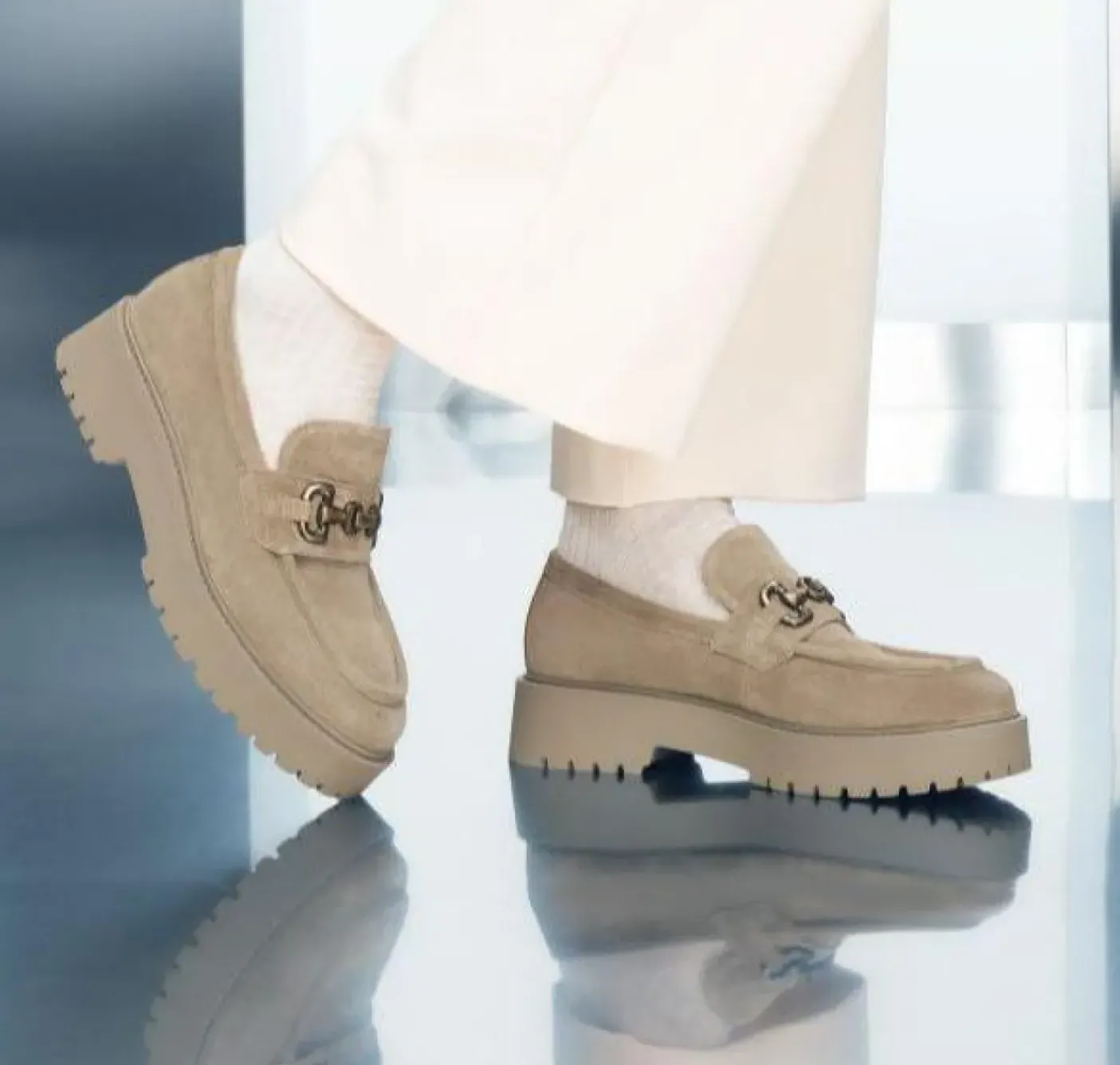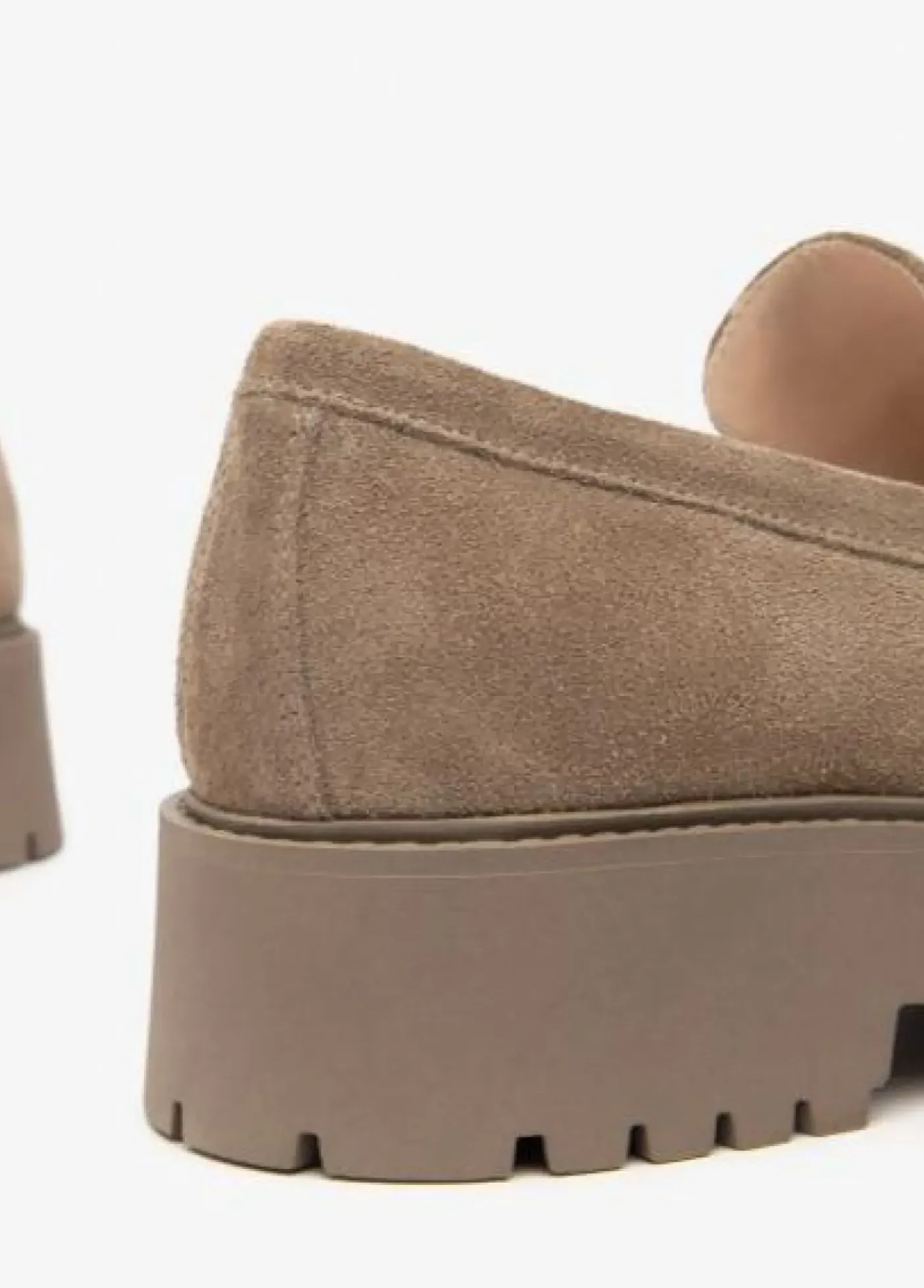 MOCASSINI CAMOSCIO ARGILLA APPLICAZIONE METALLICA