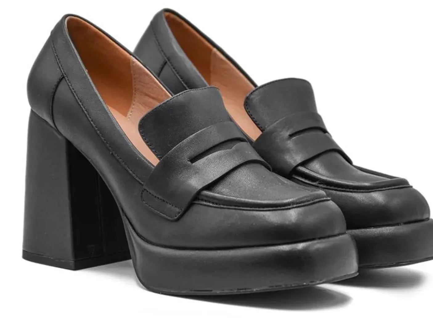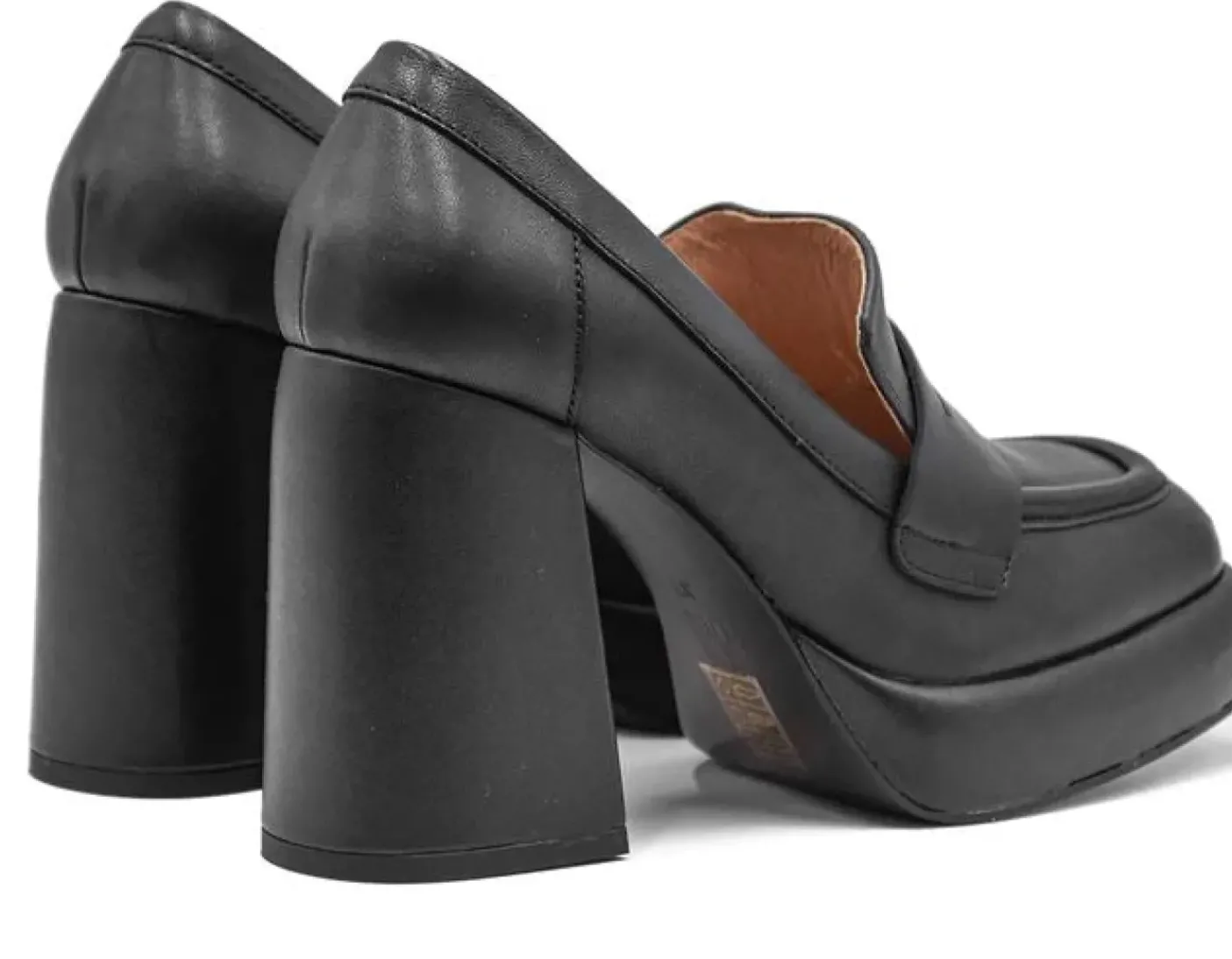 Mocassini in vera pelle morbida. Rivestito internamente in pelle. Punta squadrata. Tacco squadrato rivestito camoscio 10cm plateau 2cm