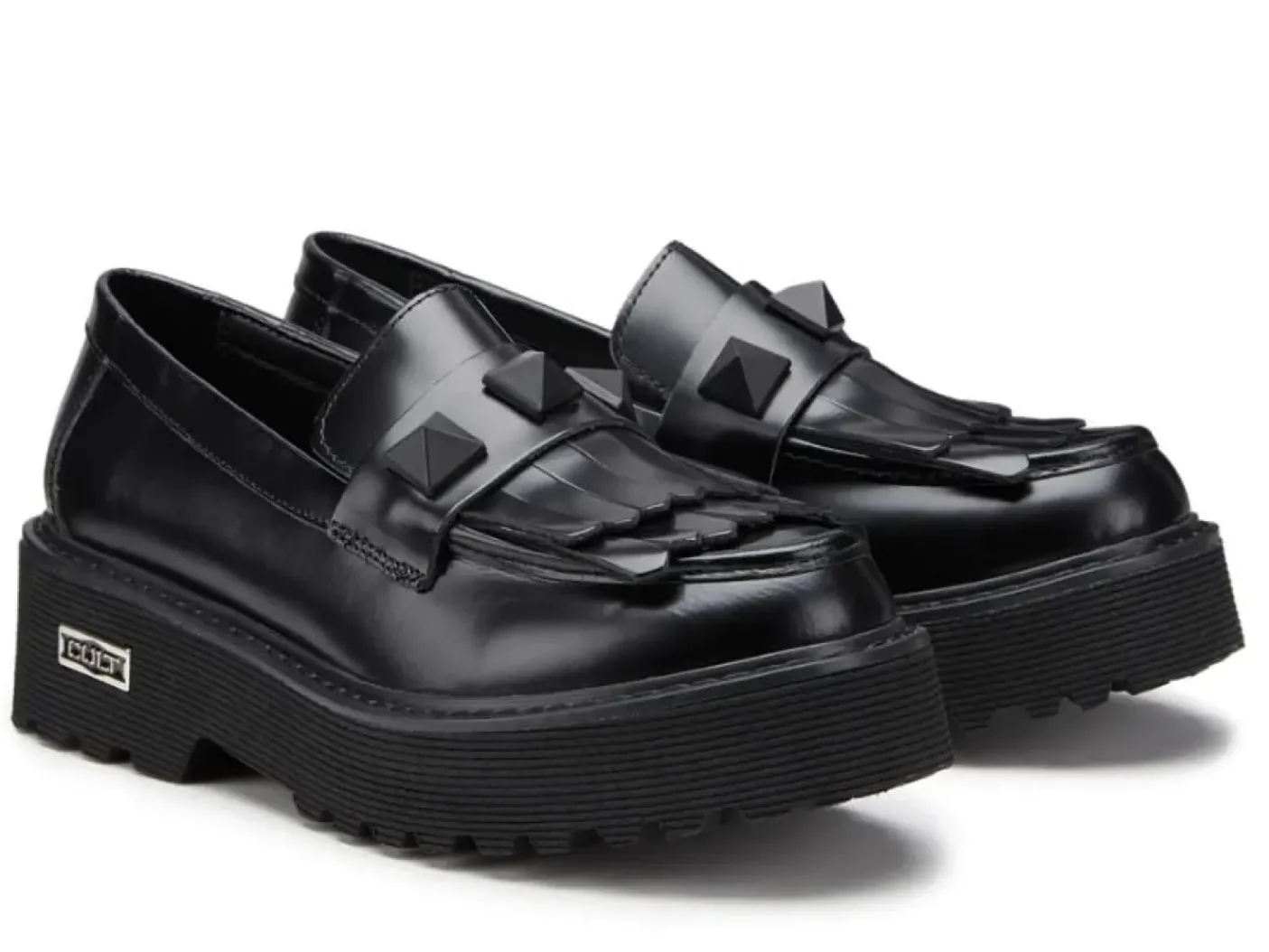 Mocassini in vera pelle spazzolata nera, questi mocassini con spessa suola in EVA, sono un must per la comodità. Decorati sulla tomaia dal maxi borchie e frange in pelle.