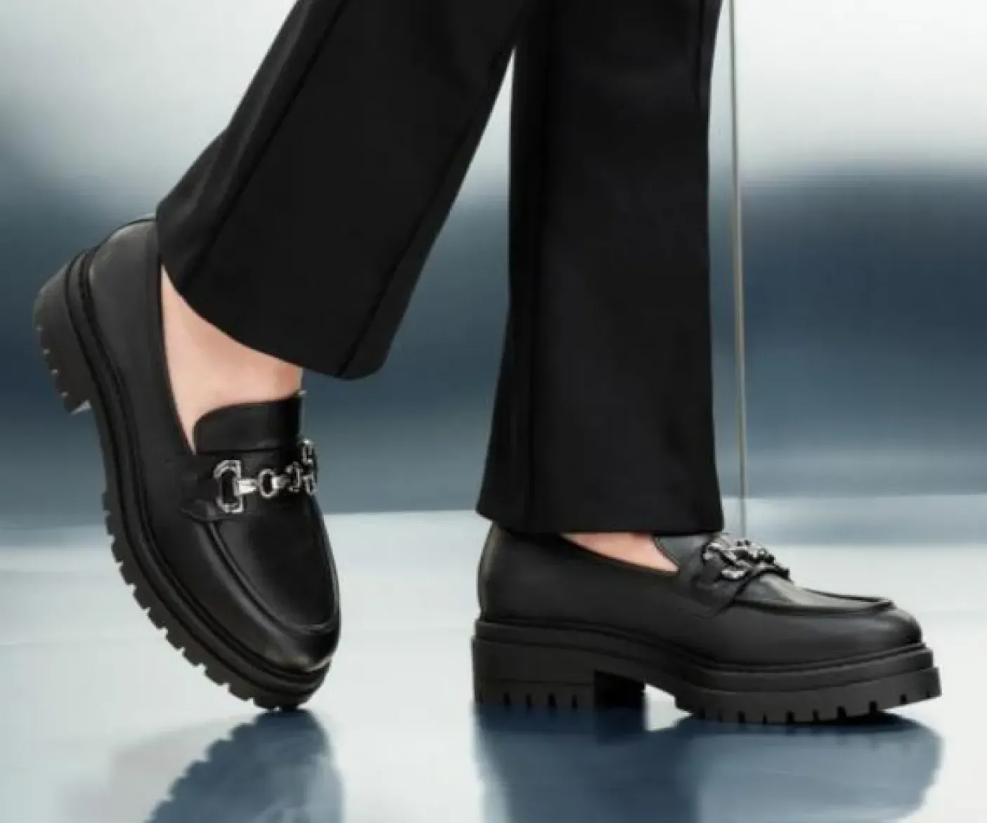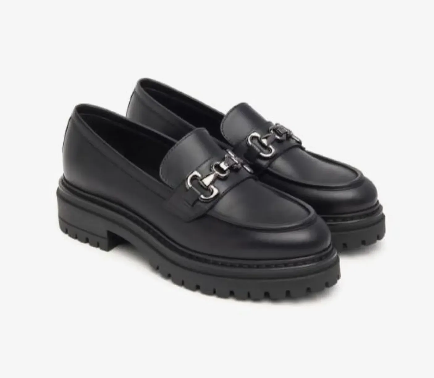 Mocassino vera pelle, rivestito internamente in pelle. Soletta in pelle. Applicazione metallica decorativa. Fondo in gomma, tacco 4cm.