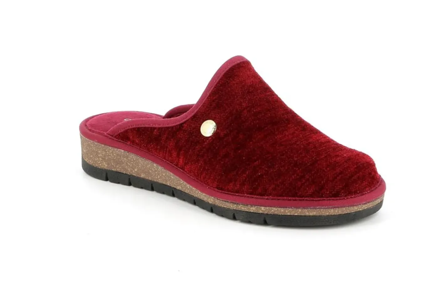 Pantofola in ciniglia con sottopiede re-soft, ammortizzante e anatomico. Suola in gomma 4cm.