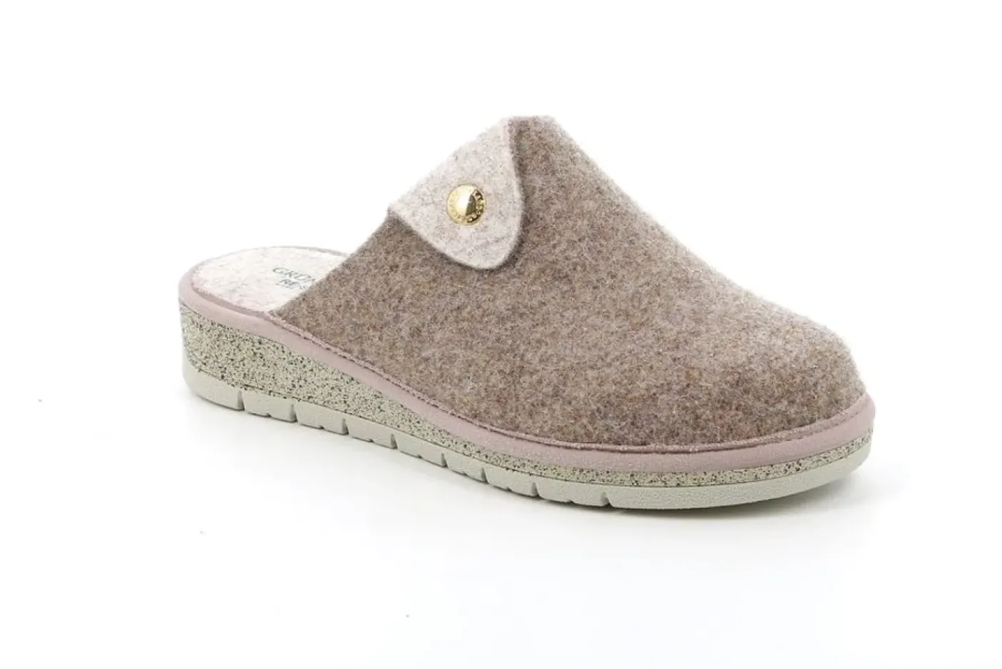 Pantofola in feltro con sottopiede re-soft, ammortizzante e anatomico. Suola in gomma