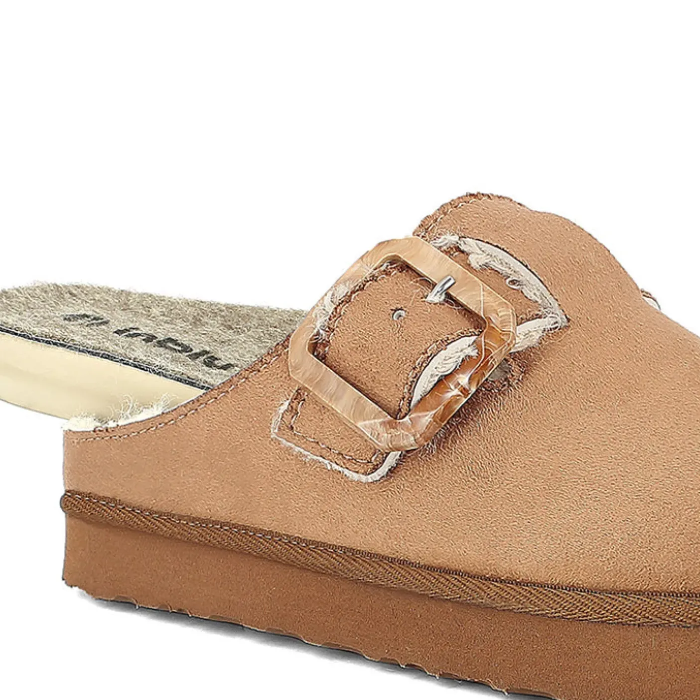 PANTOFOLE TESSUTO ED ECOPELLICCIA FIBBIA