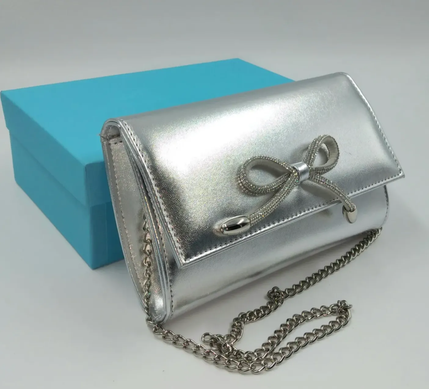 POCHETTE ARGENTO CON FIOCCO STRASS