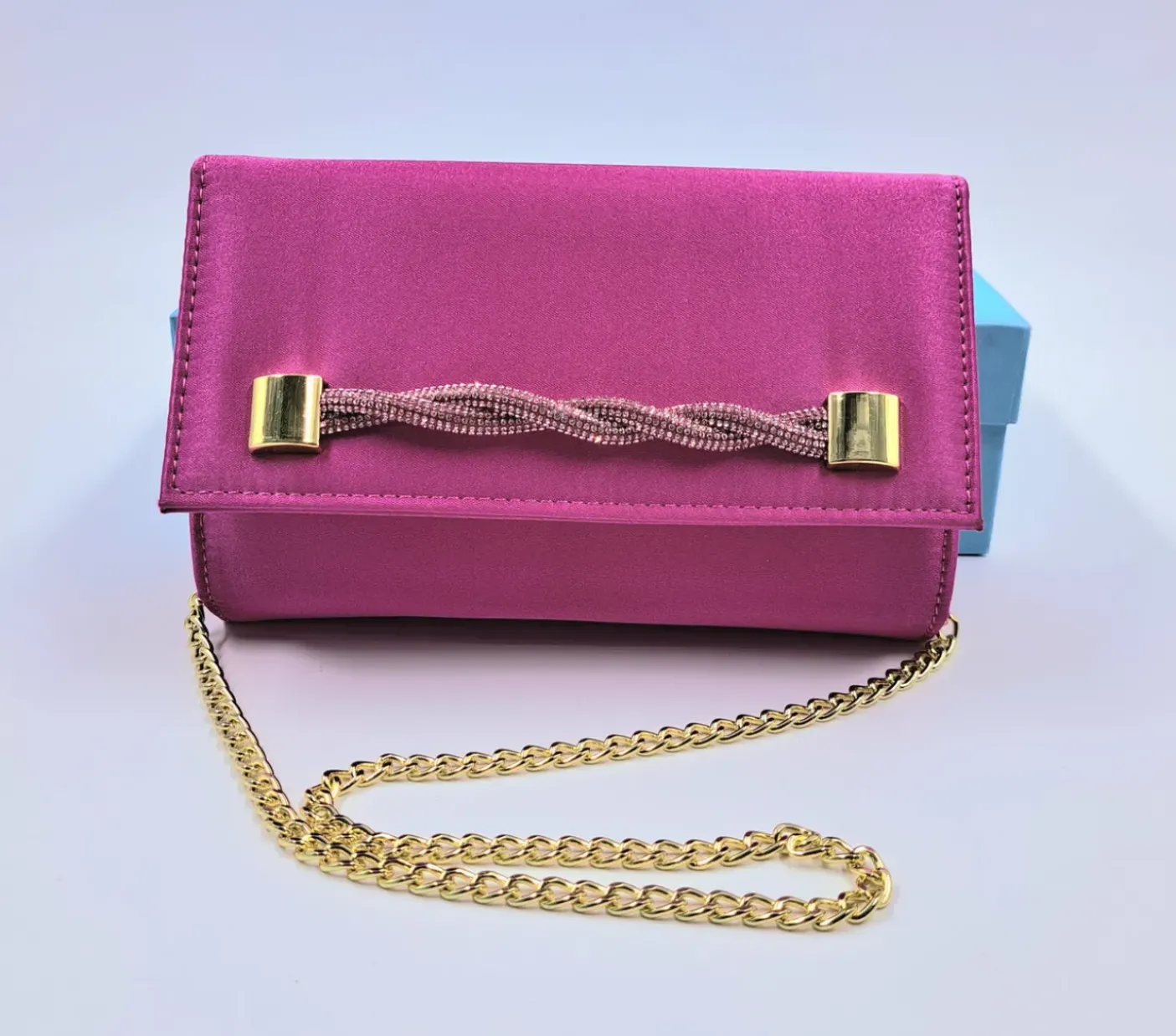 POCHETTE RASO FUXIA APPLICAZIONE STRASS