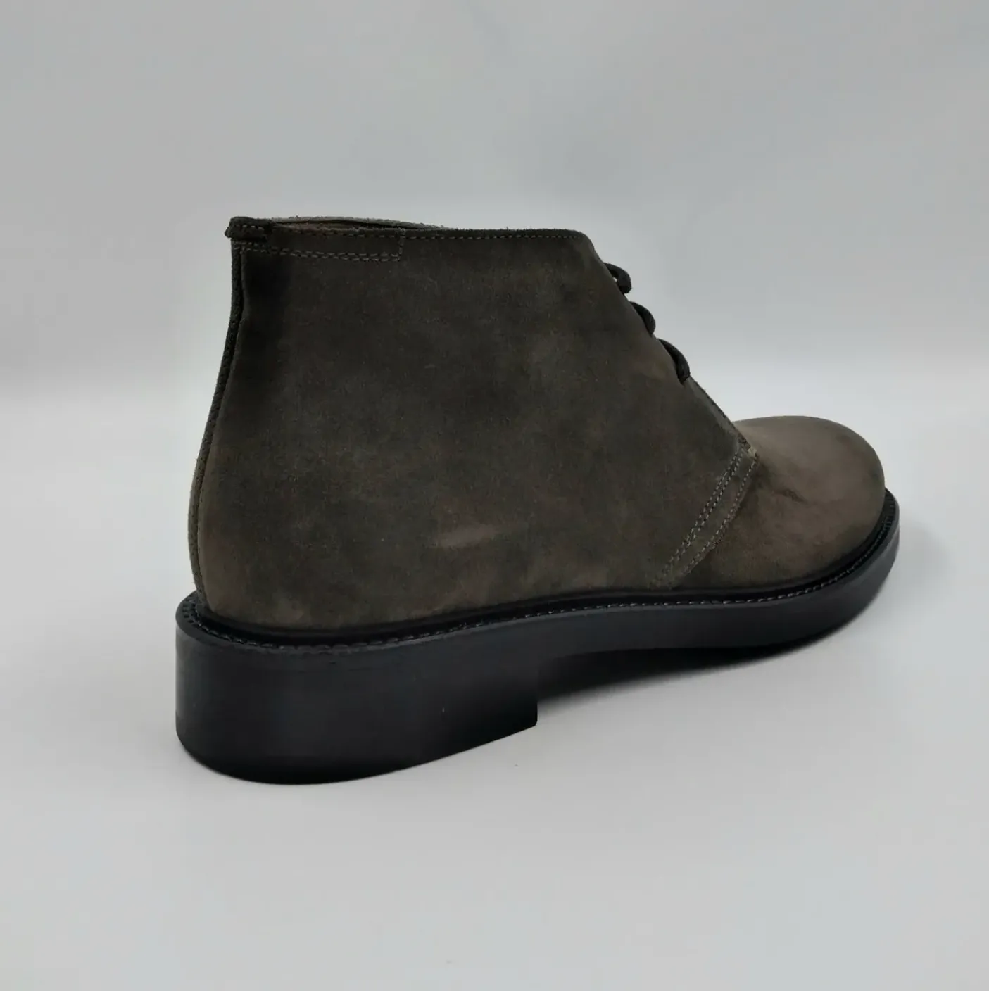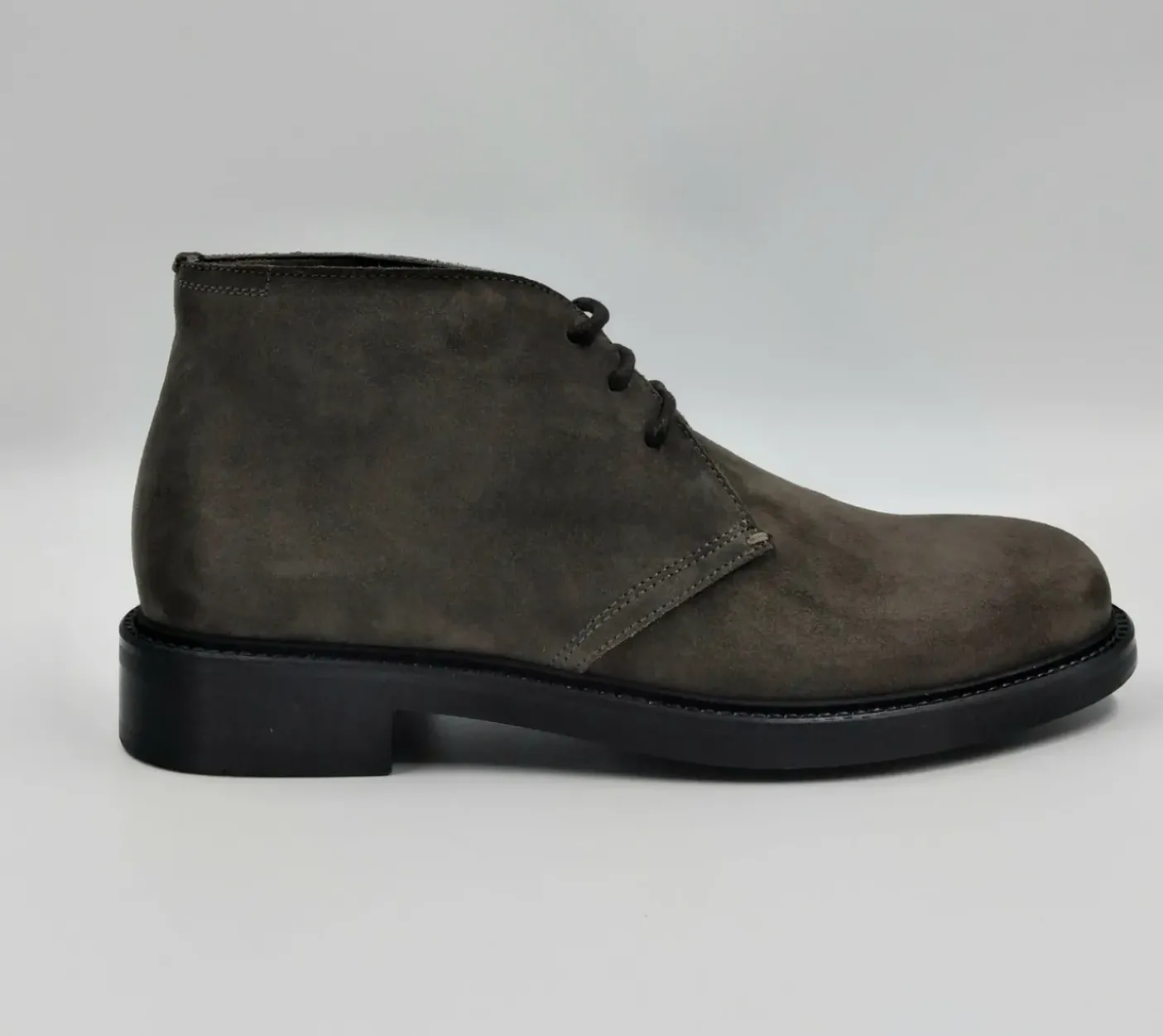 Polacchini in vero camoscio, rivestito internamente in pelle. Chiusura con lacci. Fondo in gomma 3cm.