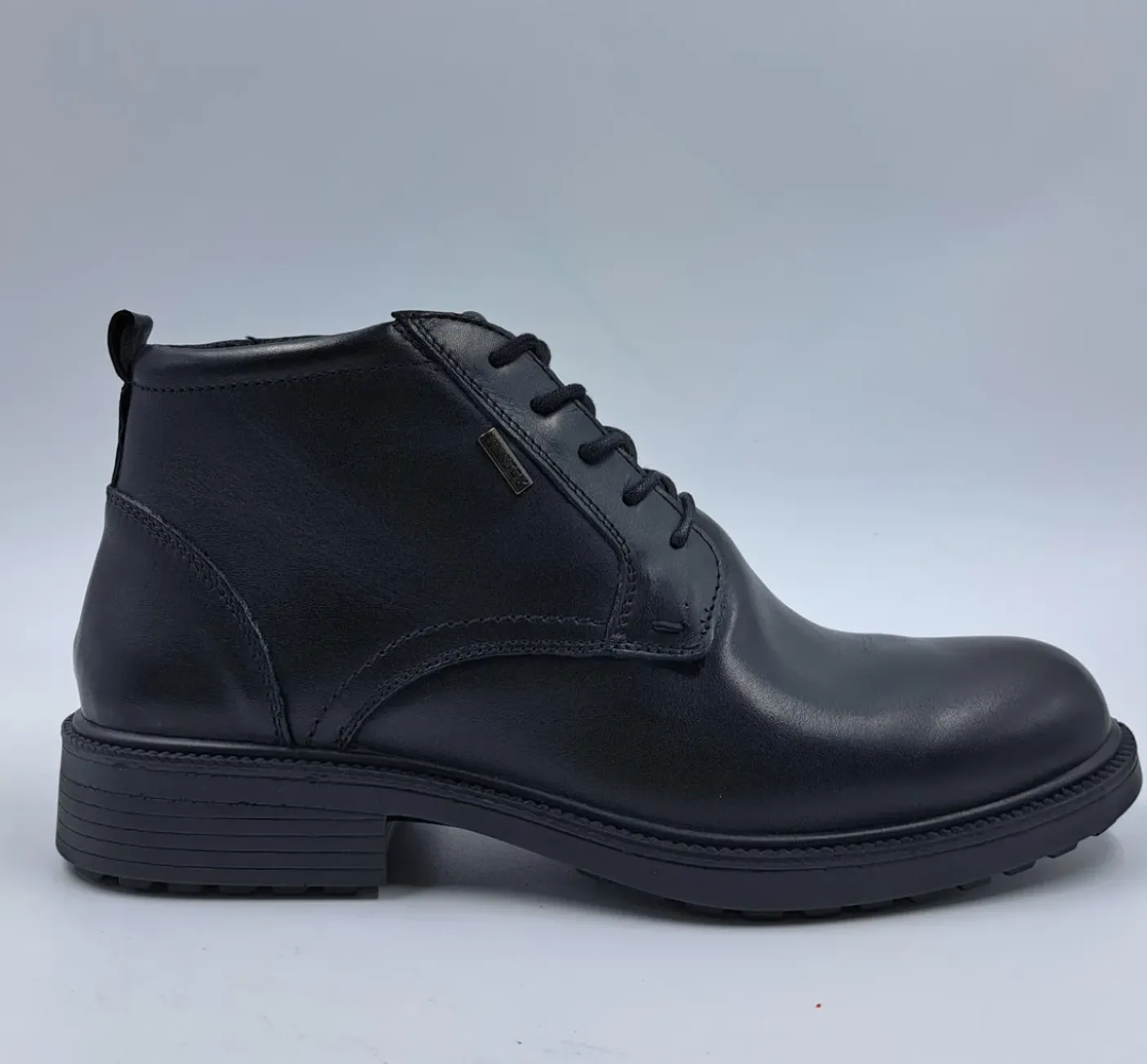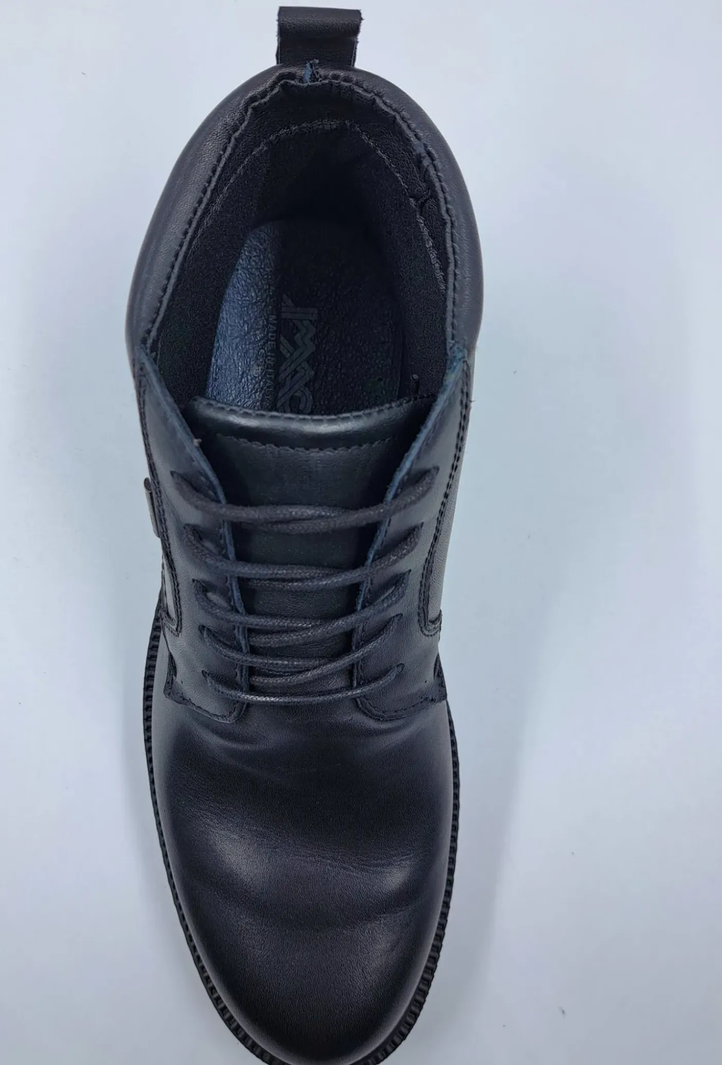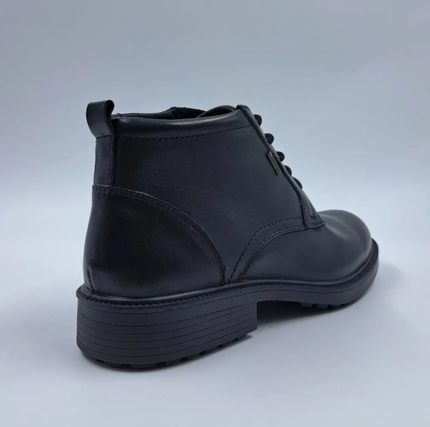Polacchino in vera pelle, con brevetto ImacTex idrorepellente= traspirante e resistente all’acqua, rivestito internamente in tessuto traspirante. Soletta imbottita in tessuto. Fondo in gomma con brevetto Shock absorber 3,5cm. Chiusura con lacci.