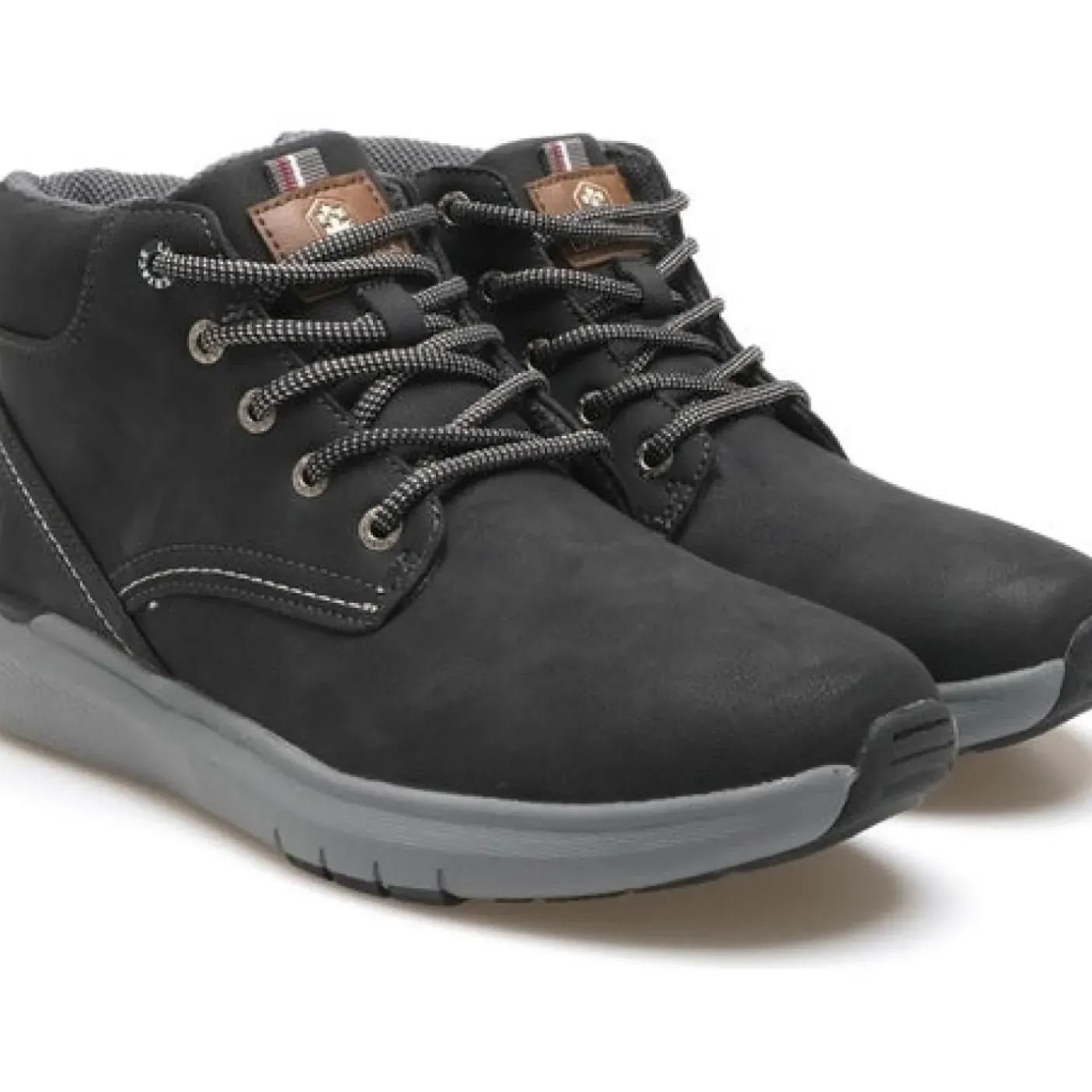 Polacchino in ecopelle rivestito internamente in caldo tessuto. Imbottitura alla caviglia con ecopelle a contrasto. Chiusura con lacci. Fondo gomma.
