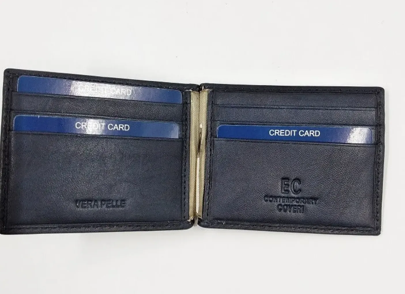 Portafoglio in pelle con gancio centrale per banconote,, multi tasche porta credit cart