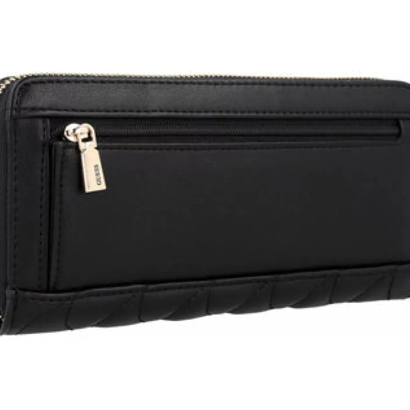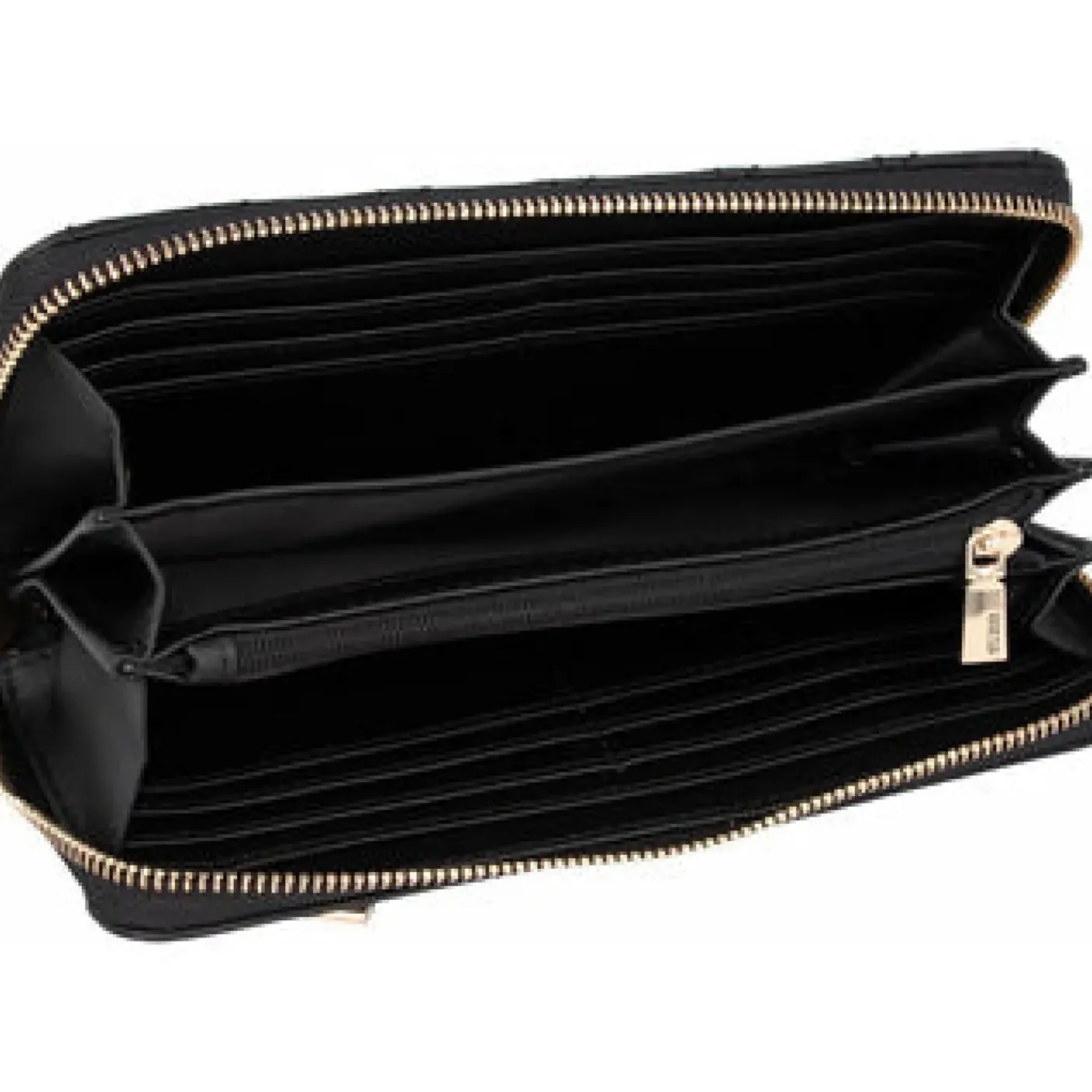 Portafoglio in ecopelle effetto trapuntato onde. Slots per carte di credito. Con manico tira zip. Tasca interna con cerniera lampo. Dettaglio logo in metallo frontale.