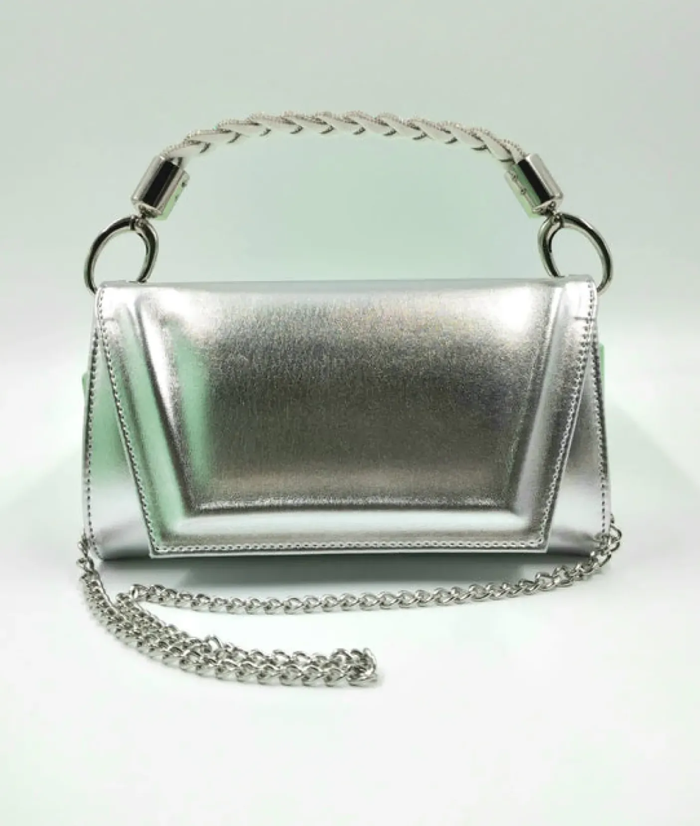 Sandalo in ecopelle con applicazione treccia strass. Rivestito internamente in pelle. Soletta in pelle. Cinturino regolabile alla caviglia. Suola in cuoio. Tacco 12cm
