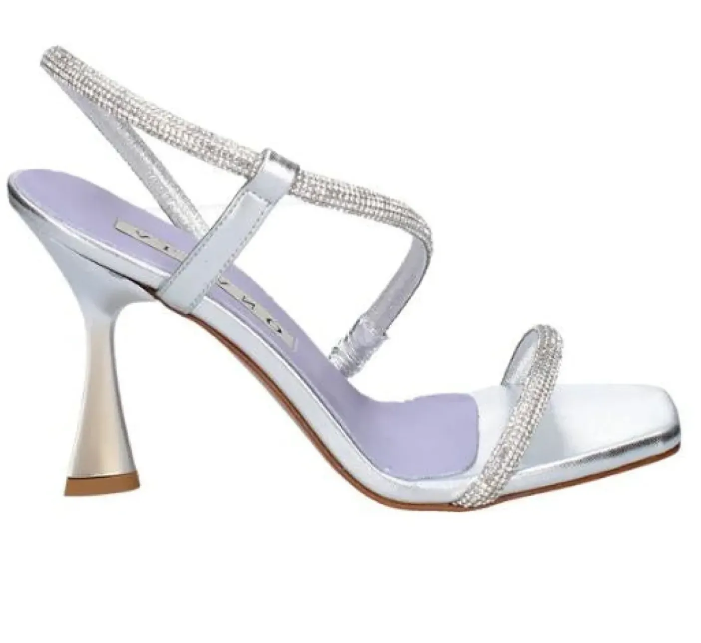 Sandalo con fascia strass. Rivestito internamente in pelle. Soletta in pelle. Suola in cuoio. Tacco 9cm plateau 1cm