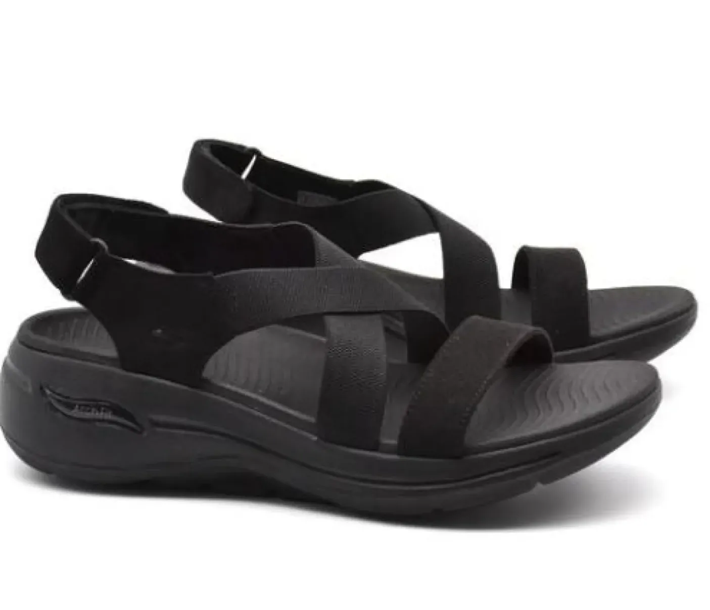 Sandali Go Walk Arch-Fit Treasured in tessuto con morbido sottopiede Arch-Fit. Chiusura con velcro e leggera suola in gomma 5cm.