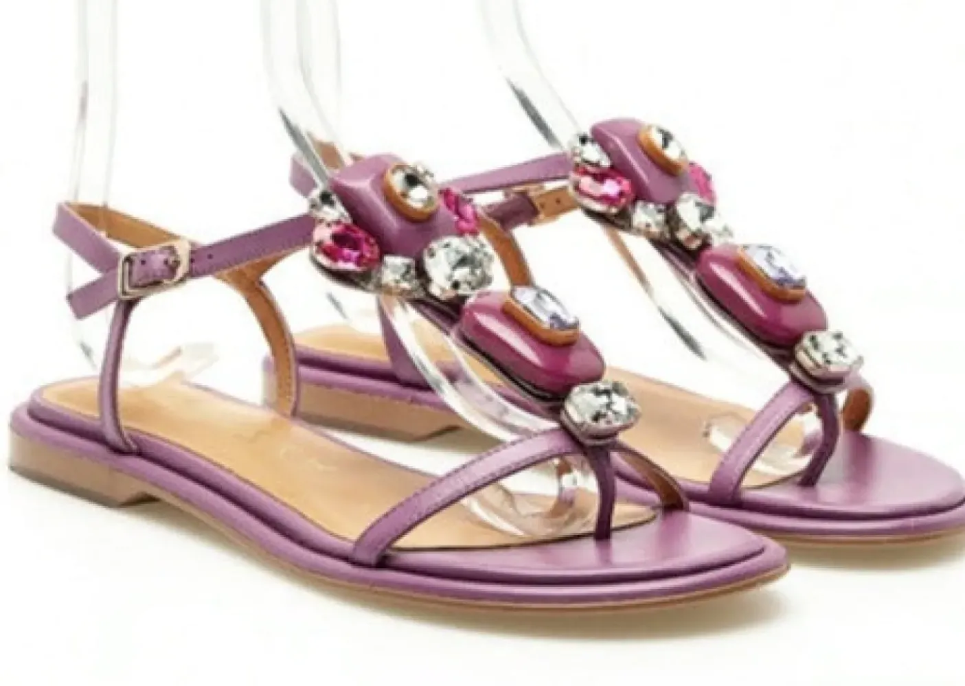SANDALI IN PELLE CON APPLICAZIONE PIETRE LILLA