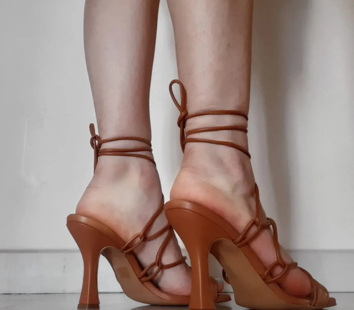 Sandali in vera pelle modello schiava, sottopiede in pelle. Lacci lunghi in pelle. Tacco 10cm