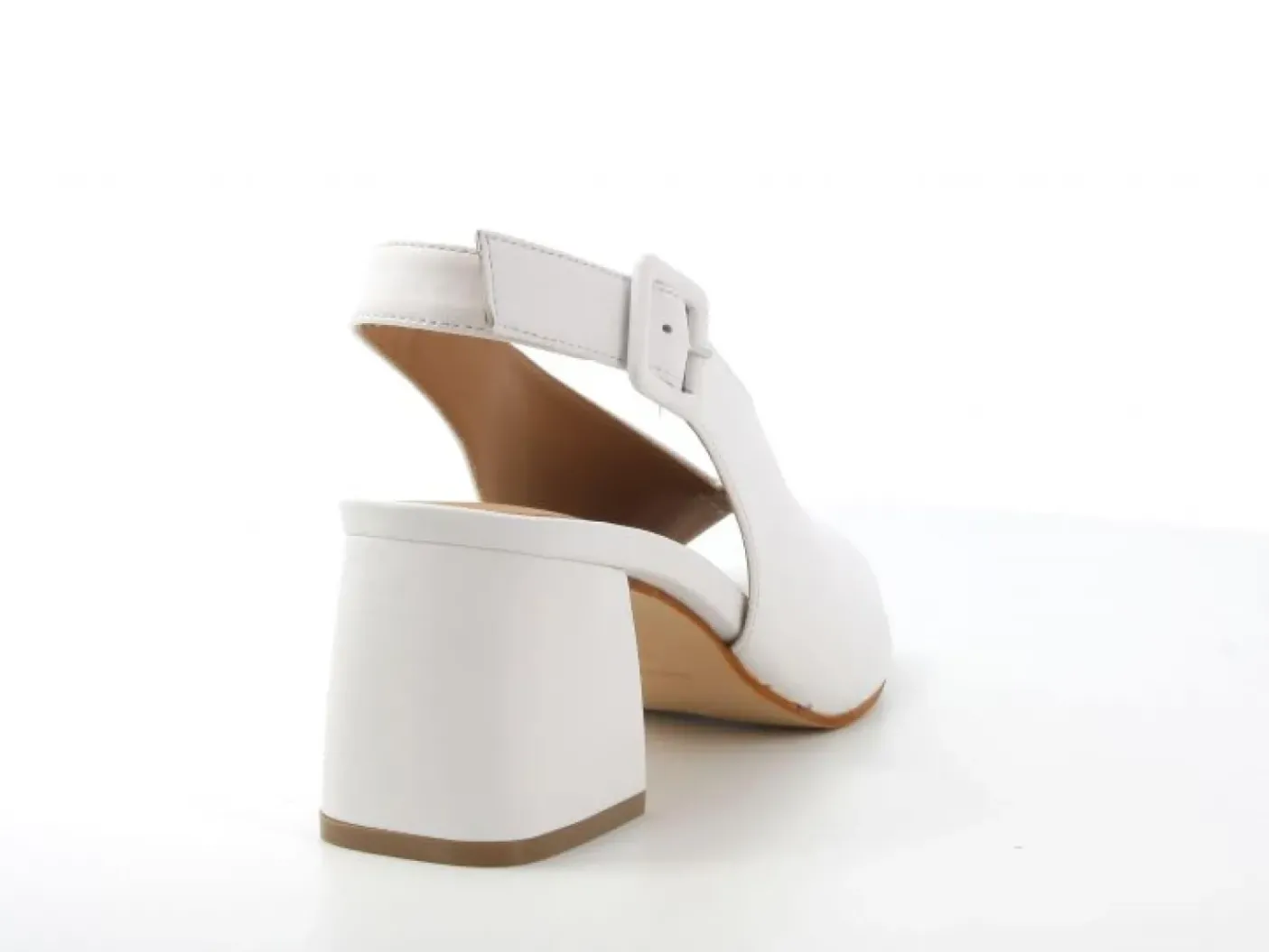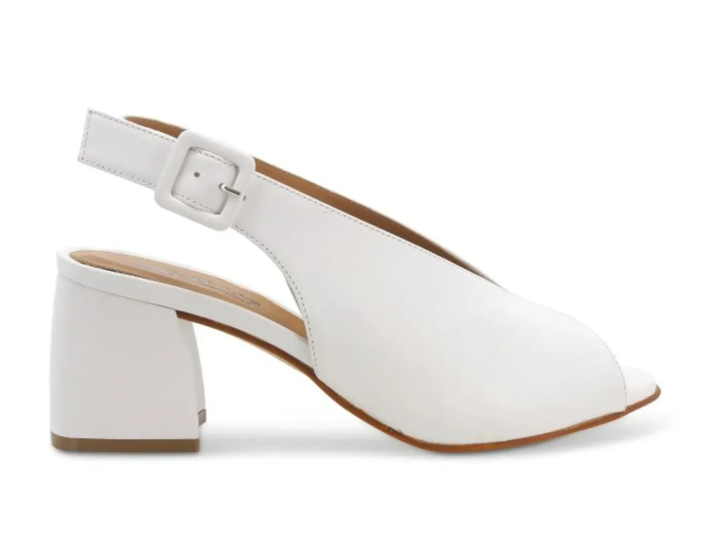 Sandali in vera pelle bianca. Rivestito internamente in pelle. Chiusura con fibbia regolabile . Tacco squadrato 4cm.