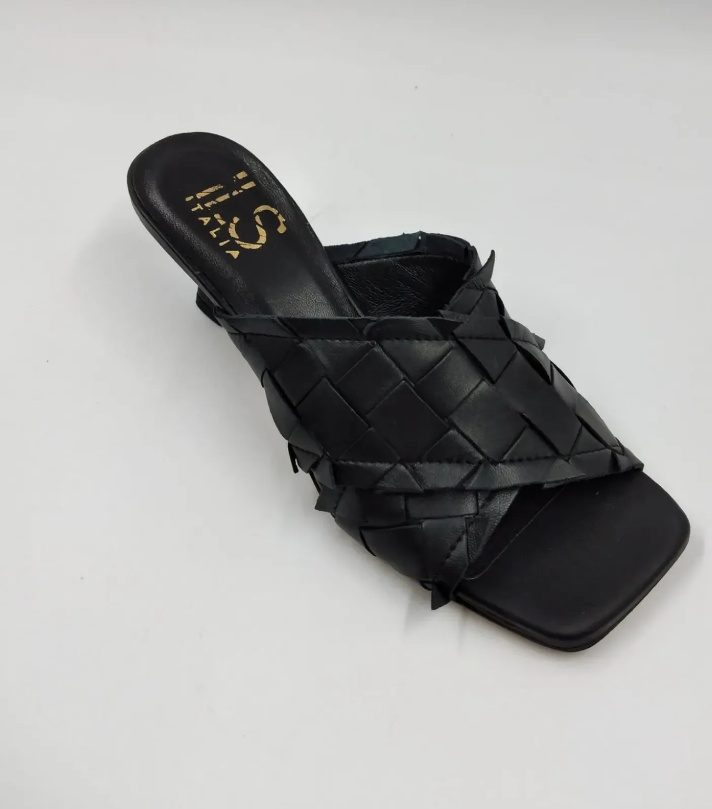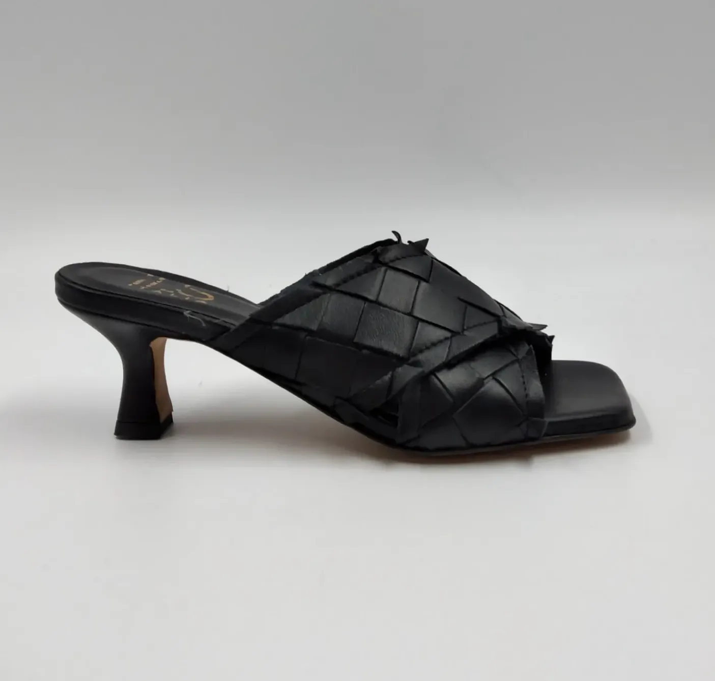 Sandali in vera pelle morbidissima intrecciata. Sottopiede in pelle. Tacco 7cm