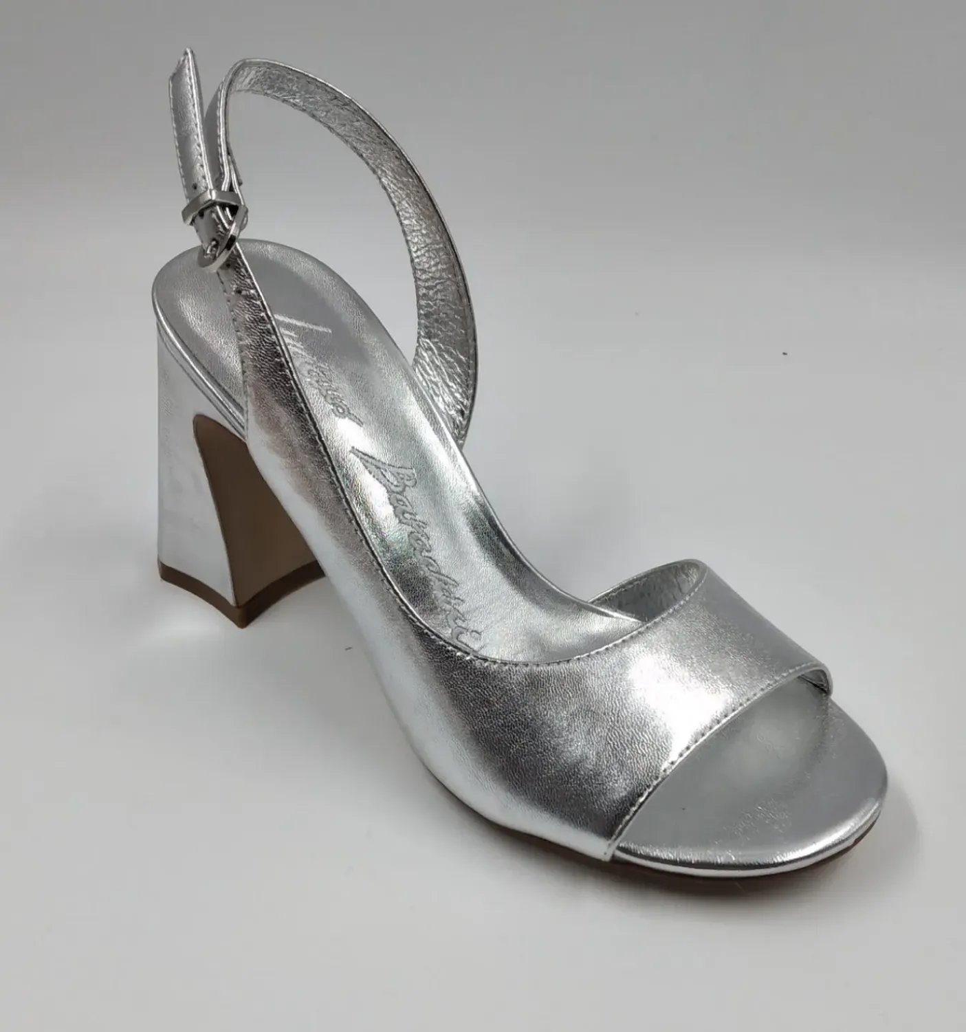 Sandali in pelle con soletta e fodera in vera pelle. Chiusura regolabile laterale. Punta squadrata aperta. Suola in cuoio. Tacco squadrato 10cm