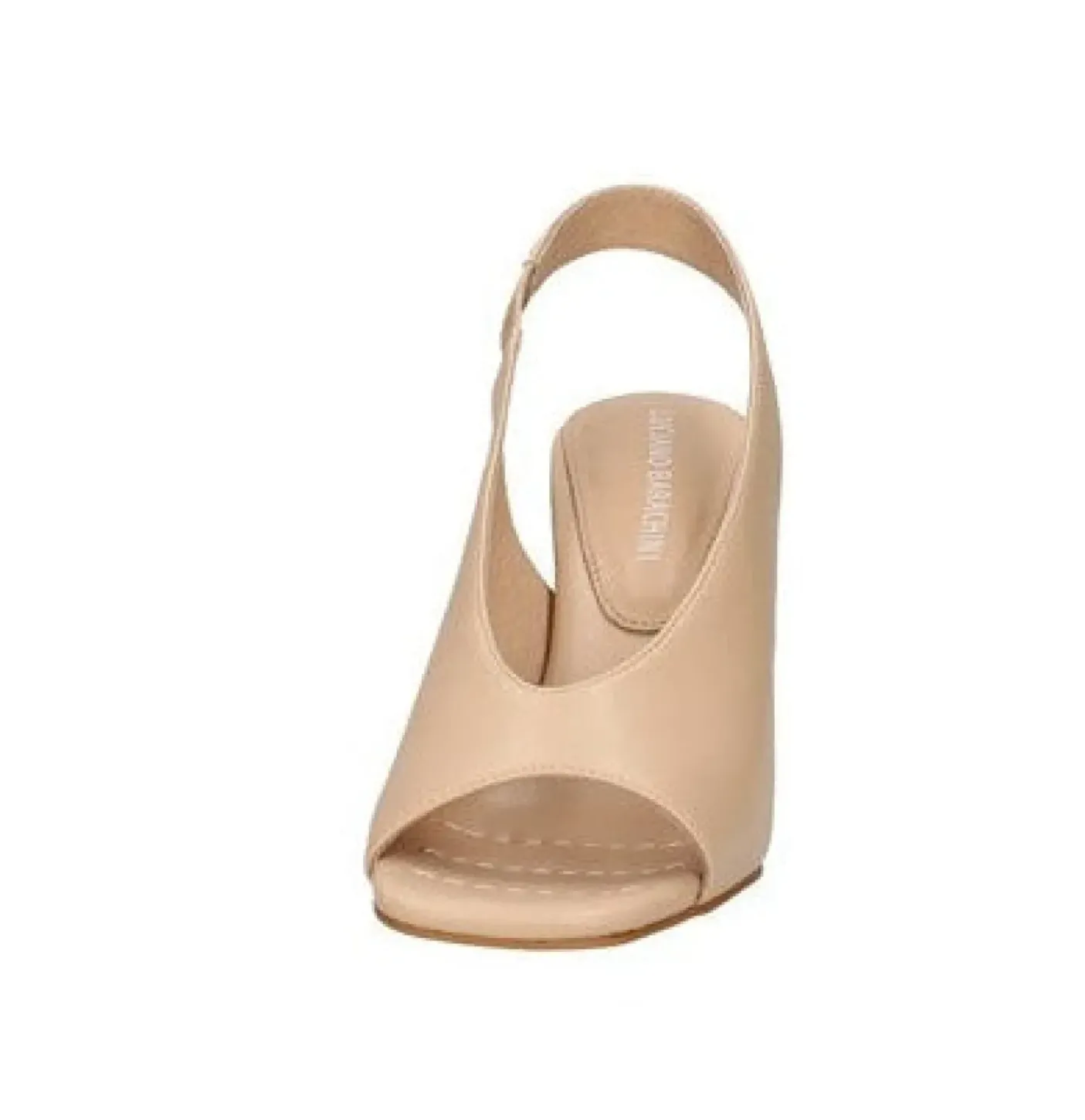 Sandalo in pelle spuntato. Tacco squadrato e chiusura con fascia elastica. Sottopiede imbottito. Tacco 9cm.