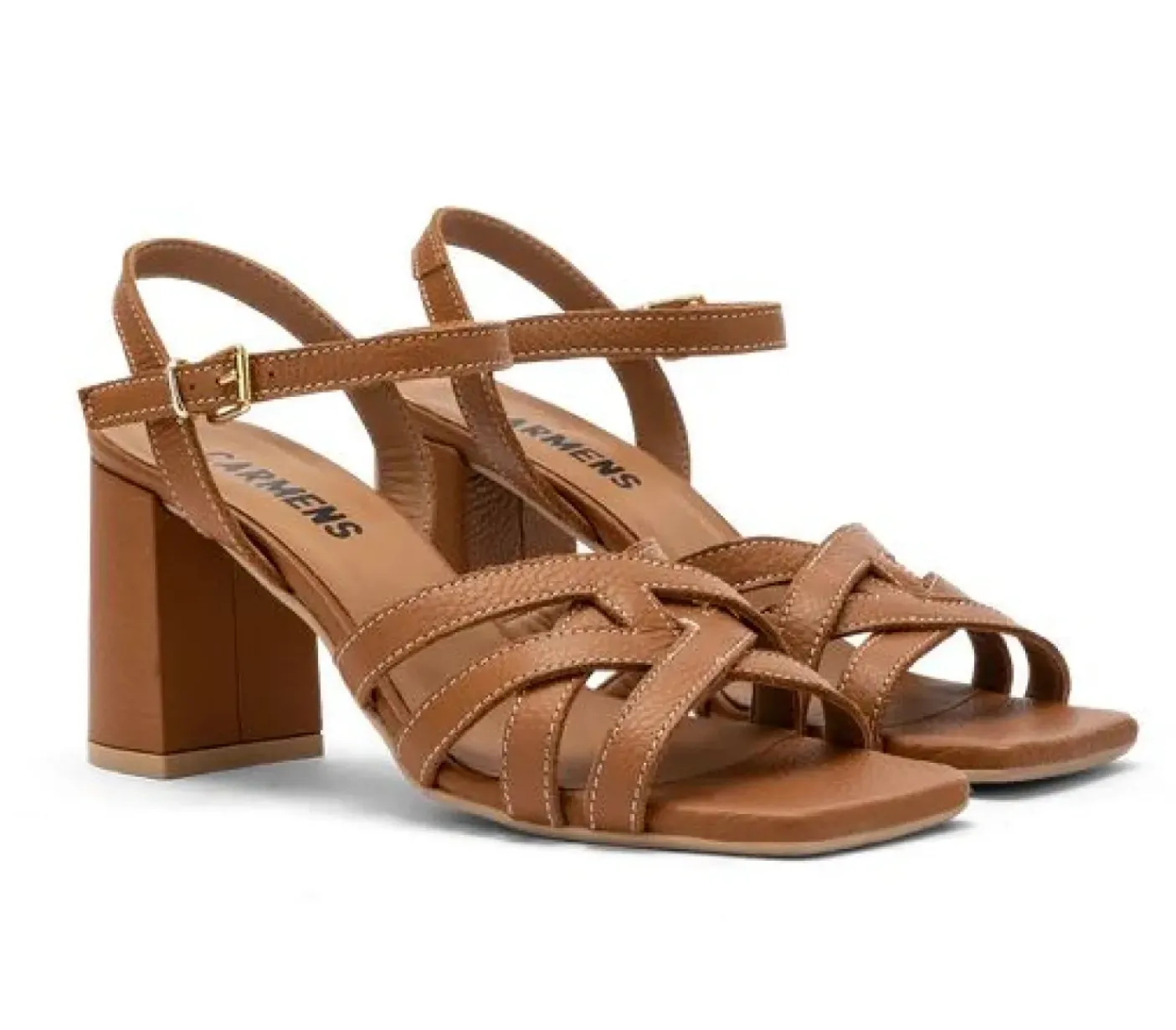 Sandali in morbida pelle bottalata, soletta in pelle. Chiusura alla caviglia regolabile. Decorazione pelle incrociata. Tacco 7,5cm