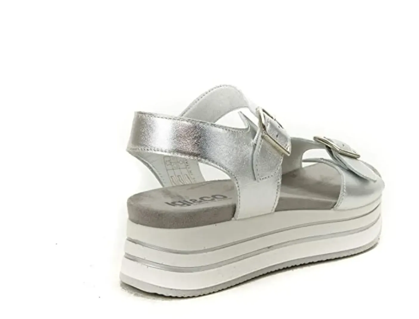 Sandalo in pelle con maxi fibbia nera, fodera in pelle. Chiusura con bibbie. Maxi platform 3,6cm