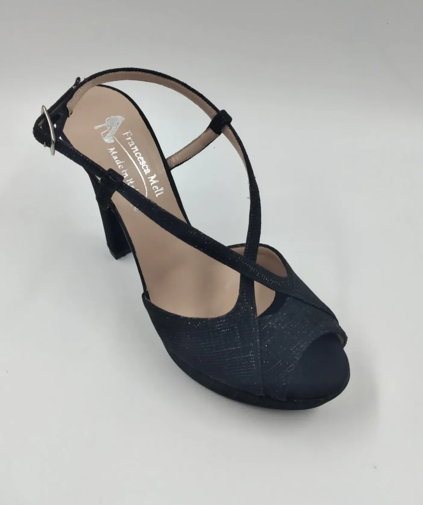 SANDALI TESSUTO LAME NERO
