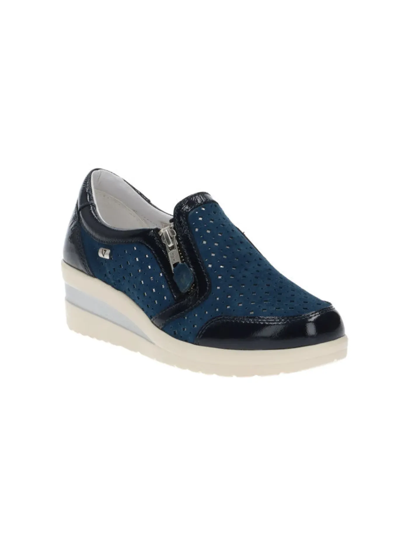 Scarpa in camoscio, rivestita internamente in pelle. Chiusura con zip laterale e sottopiede in pelle. Fondo in gomma 4cm.