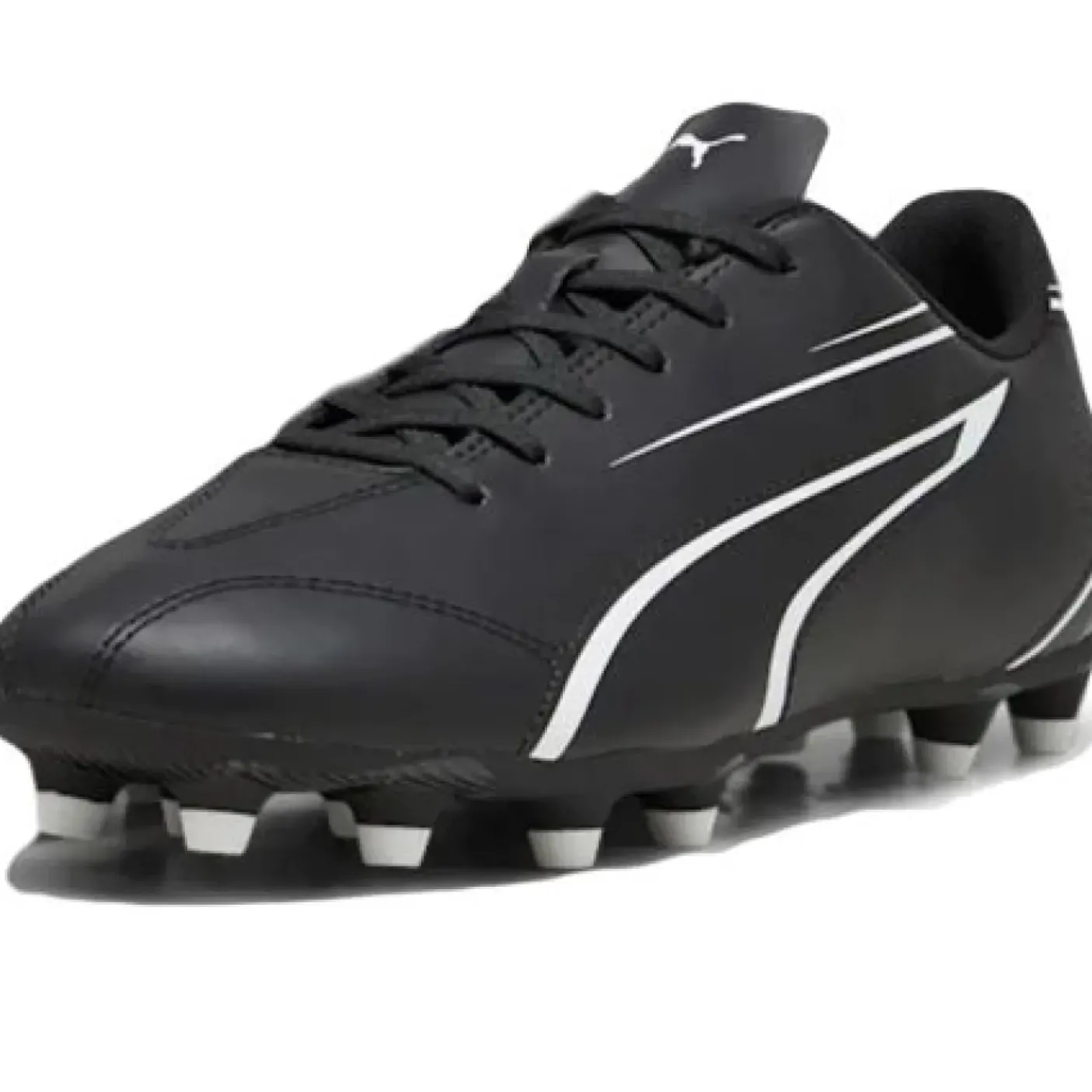 Scarpa calcio in ecopelle morbida ma estremamente resistente con dettagli di cucitura e stampa. Suola leggera in TPU con tacchetti conici. Adatta per l’uso su superfici naturali compatte e su erba sintetica.