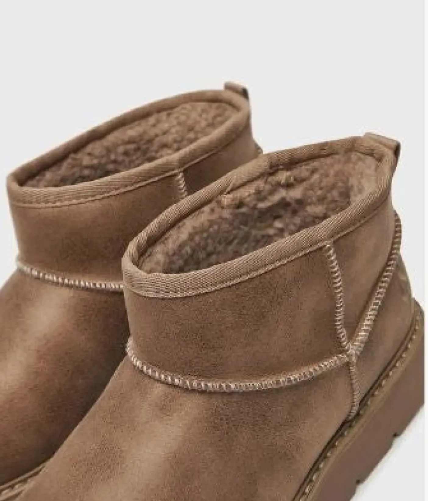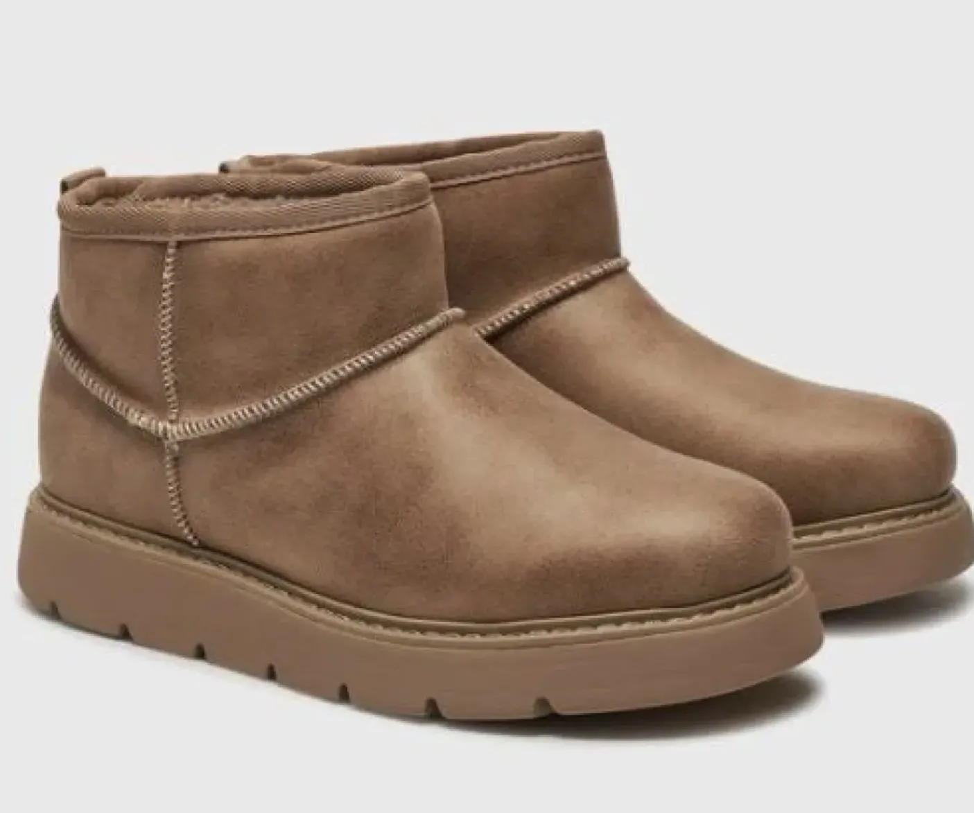 Scarponcini in tessuto effetto pelle con fodera in shearling sintetico. Trattate con 3M® Scotchgard® per resistere ad acqua. Soletta ammortizzata Warm Tech Memory Foam progettata per trattenere il calore corporeo. Fondo gomma 2,5cm