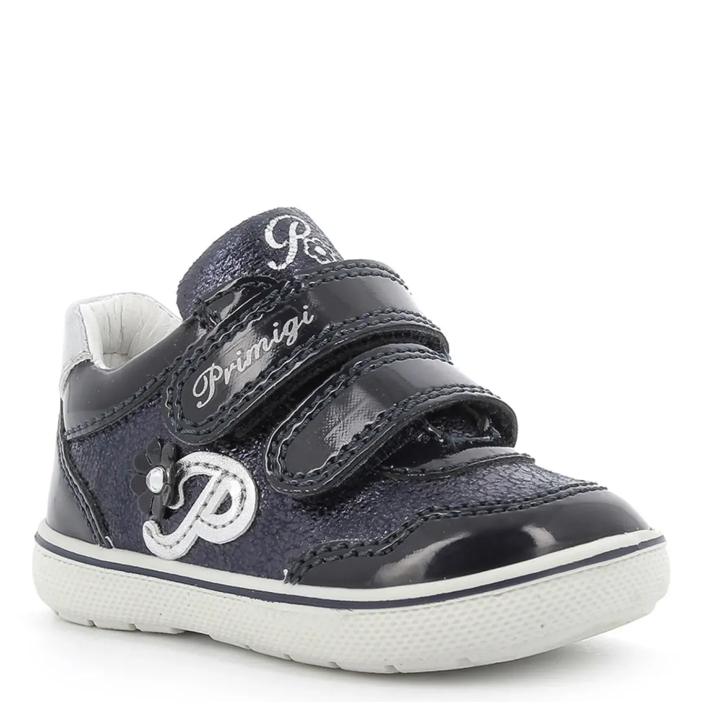 Scarpe lucide Primi Passi in vernice ed ecopelle laminata. Rivestita internamente in pelle Cromo Free, suoletta estraibile. Chiusura doppio strappo