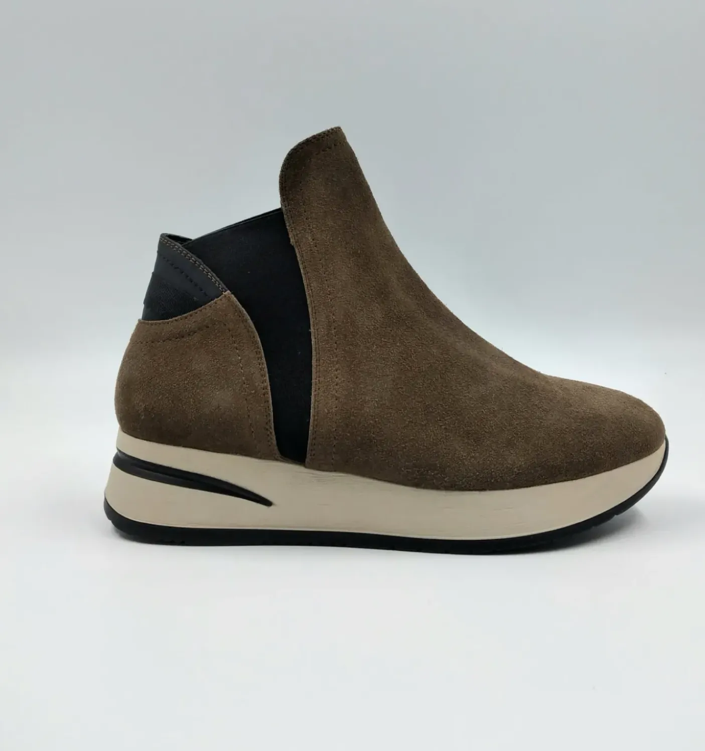 Scarponcini in morbido camoscio con elastici laterali.