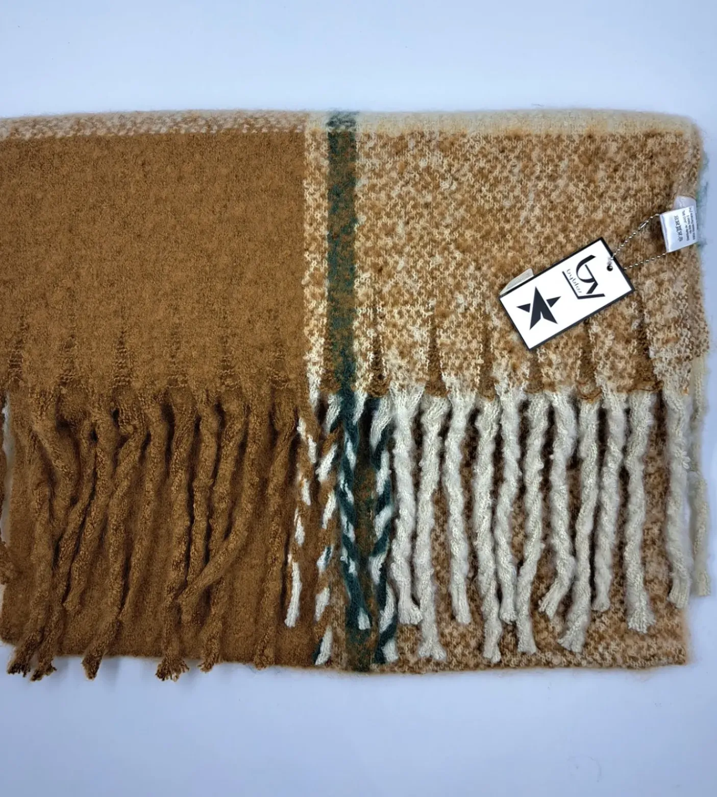 SCIARPE MORBIDA CAMEL DETTAGLIO VERDE