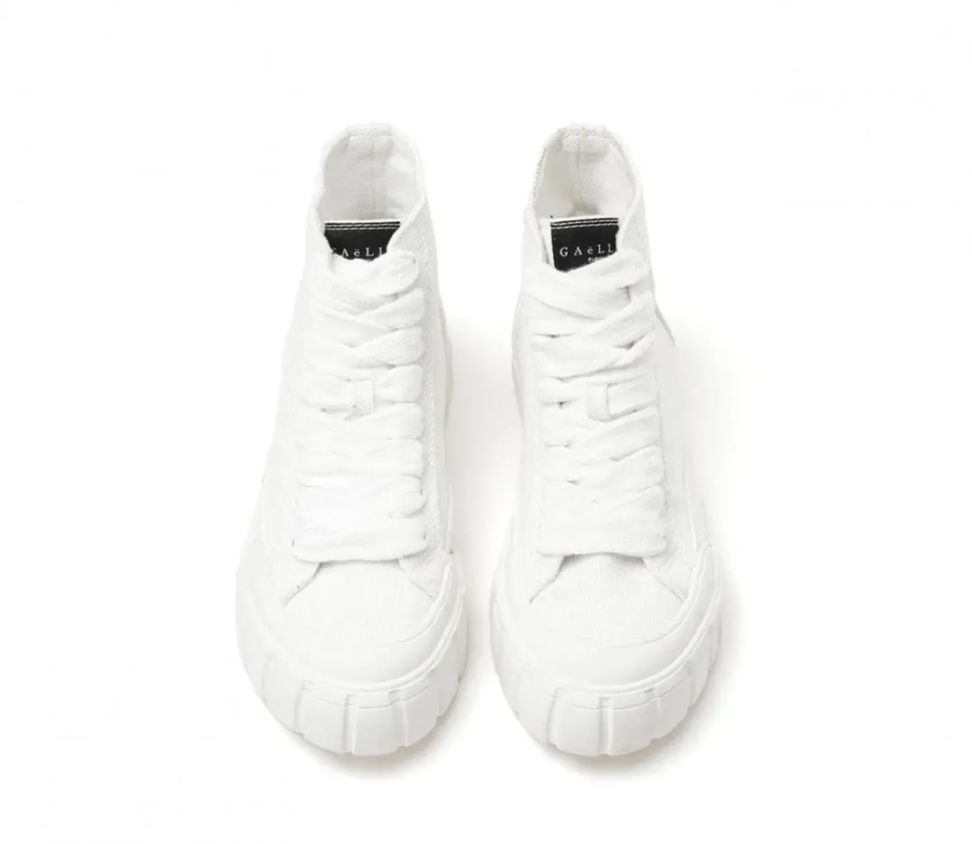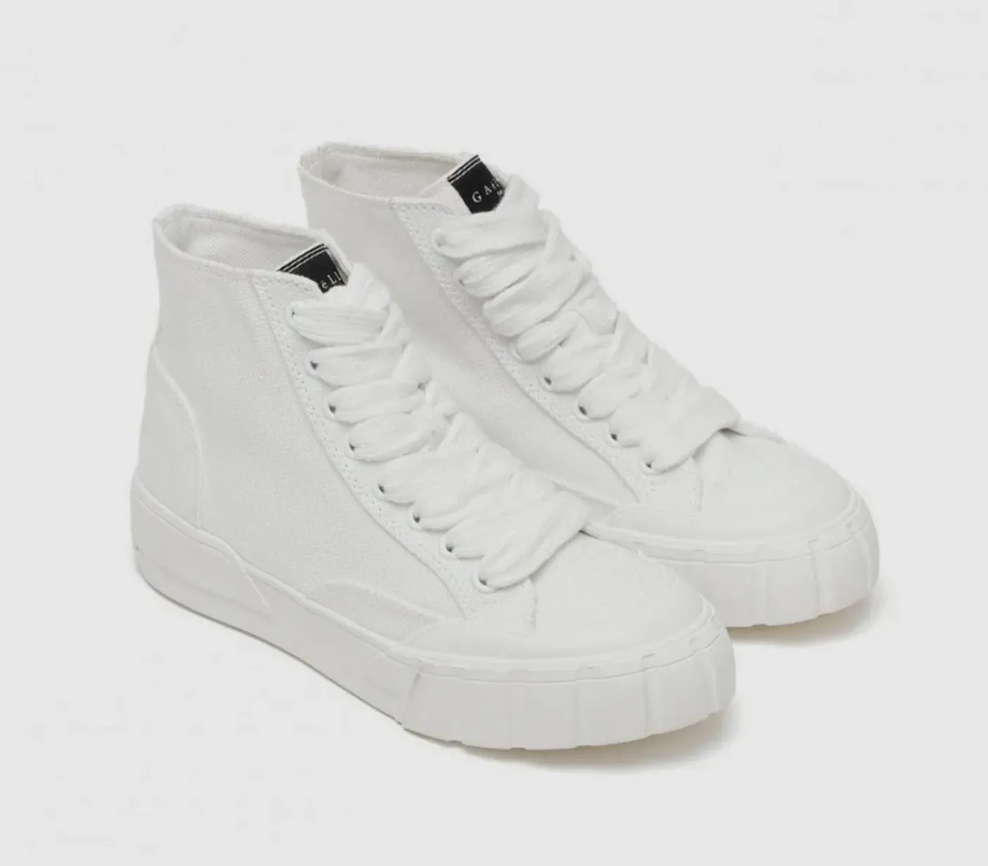 Sneakers modello basket in tela bianca. Chiusura con lacci cotone bianco. Fondo gomma.