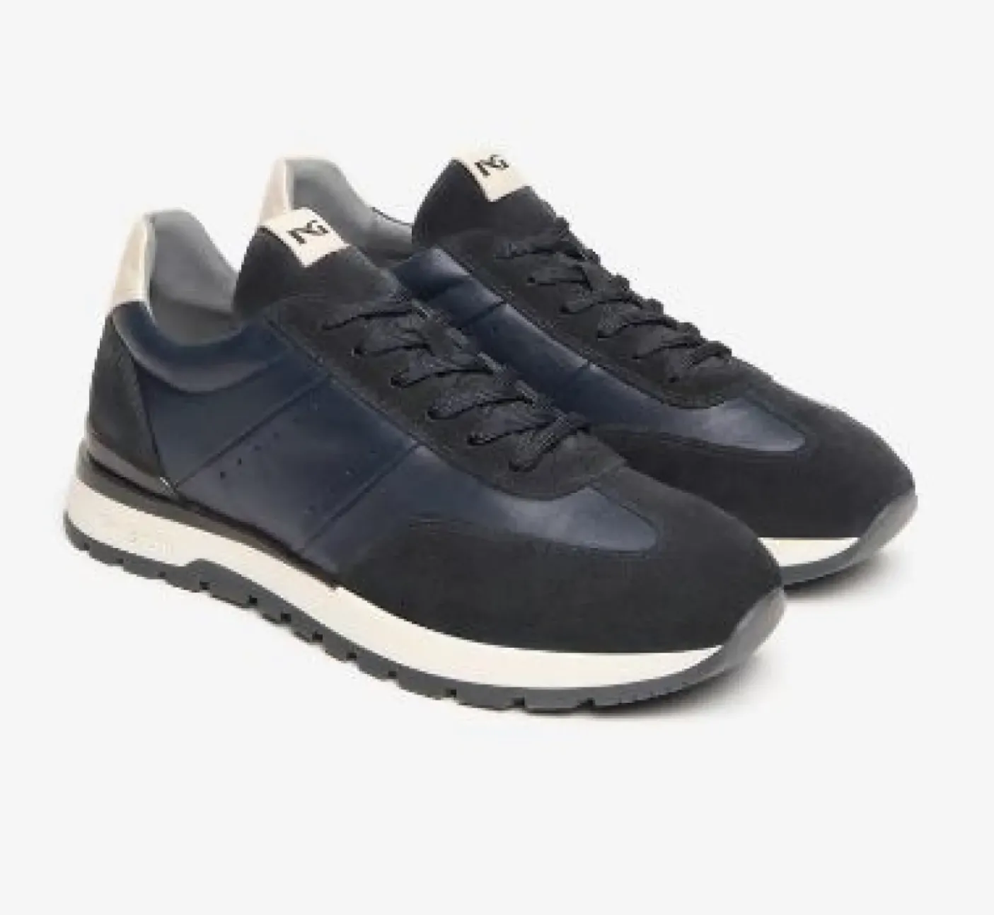 Sneakers in pelle e camoscio, rivestita internamente in pelle. Spoiler pelle bianca. Sottopiede con tecnologia DryGo!® . Chiusura con lacci. Fondo gomma 3,5cm.