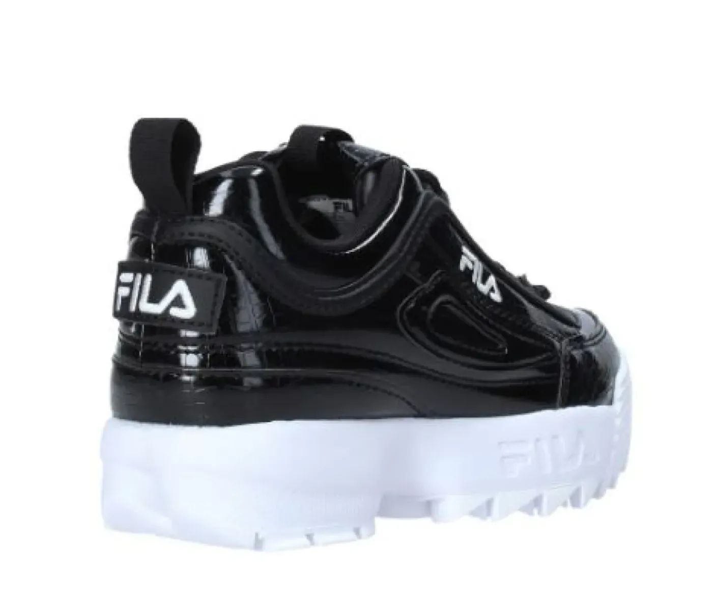 Sneakers in ecopelle lucida, rivestita internamente in tessuto. Fondo in gomma 3 cm. Chiusura con lacci.