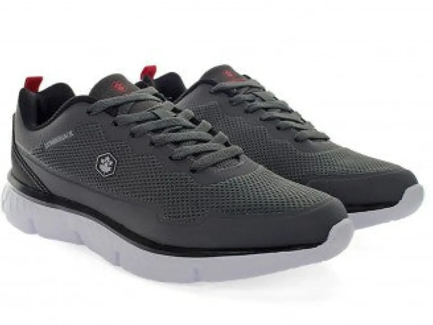 Sneakers in tessuto ed ecopelle. Chiusura con lacci e fondo in gomma.